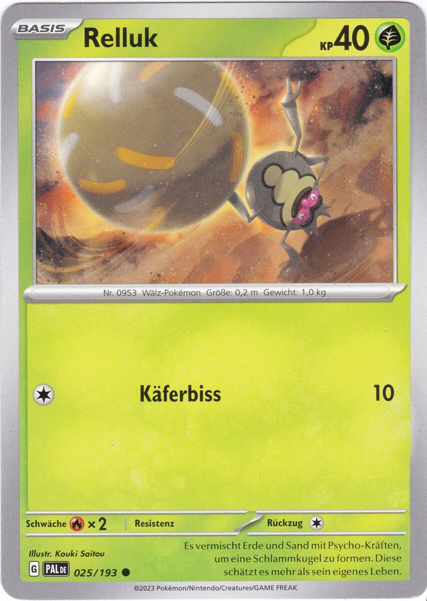 - P Relluk wälzt seine Schlammkugel umher, während es die Energie für seine anstehende Entwicklung heranreifen lässt.