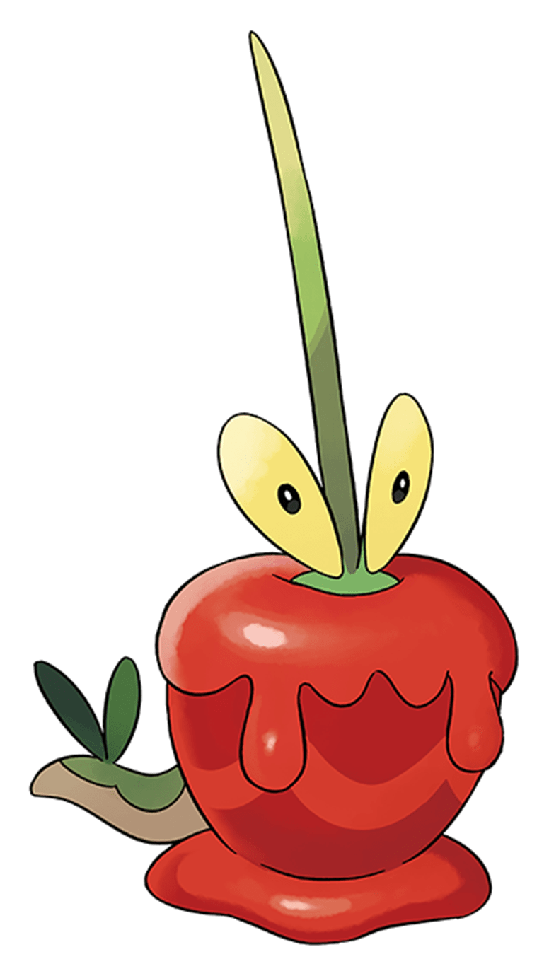 - K Dieses Pokémon besteht aus zwei Individuen. Es hat sich mithilfe eines Apfels entwickelt, der nur in einer bestimmten Gegend angebaut wird.