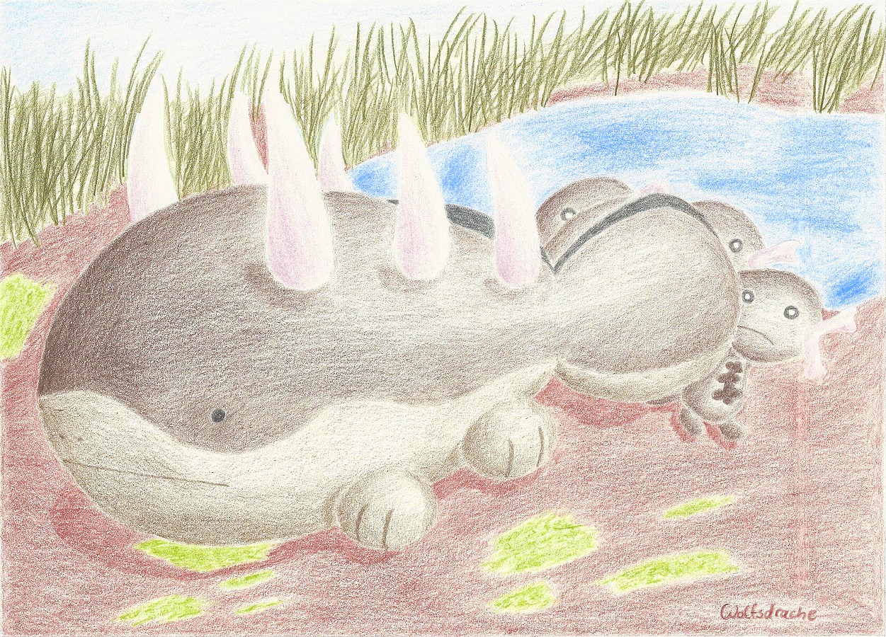 Im Schatten sitzend beobachtete Suelord in aller Ruhe, wie seine Trainerin das Essen zubereitete. Die anderen Pokémon tollten um den gedeckten Picknicktisch herum oder verbrachten die Zeit im Schatten, um sich zu erholen. Mit gleichgültigem Blick nahm Suelord wahr, wie Affiti auf seinen Rücken gesprungen war und von dort einen interessierten Rundumblick wagte. Das alles kümmerte das gemächliche Pokémon aber nicht und so öffnete es lediglich das Maul, um ein langgezogenes Gähnen erschallen zu lassen. Erst als ein kleiner Teller mit einem Stück Sandwich vor ihm abgestellt wurde, schlich sich ein Lächeln auf sein Gesicht. Das freute auch Suelords Trainerin.