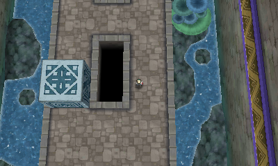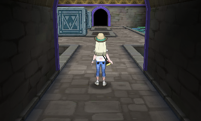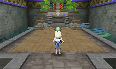 Auf dem Podest im Inneren der Ruinen kann, nach Eintritt in die Ruhmeshalle, das legendäre Pokémon