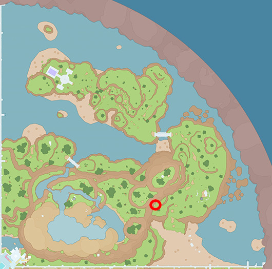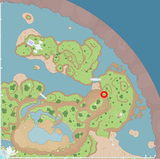 Beim Küsten-Freiluftklassenzimmer westlich zum Fluss hinunter springen, dort in der Ecke |