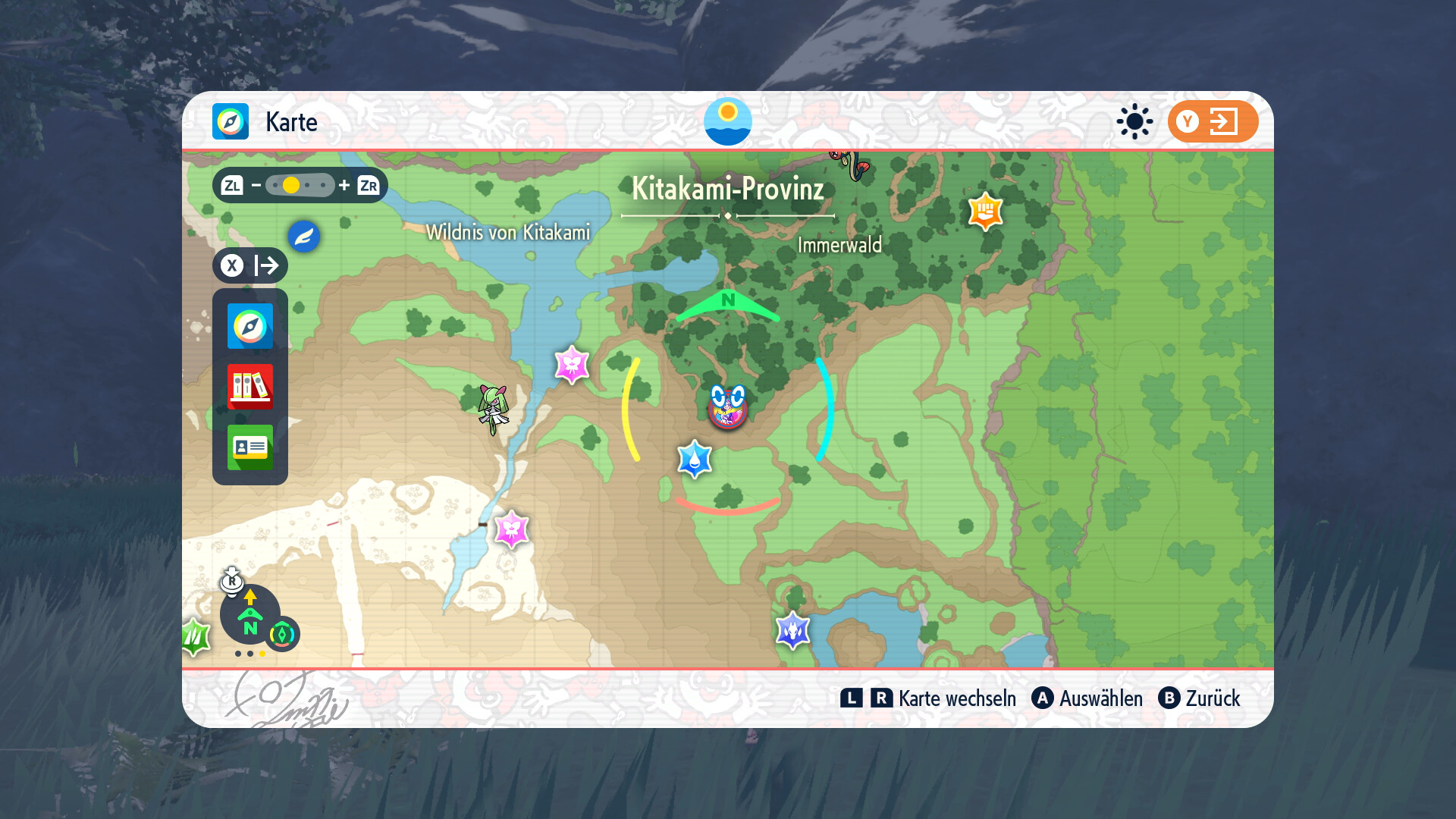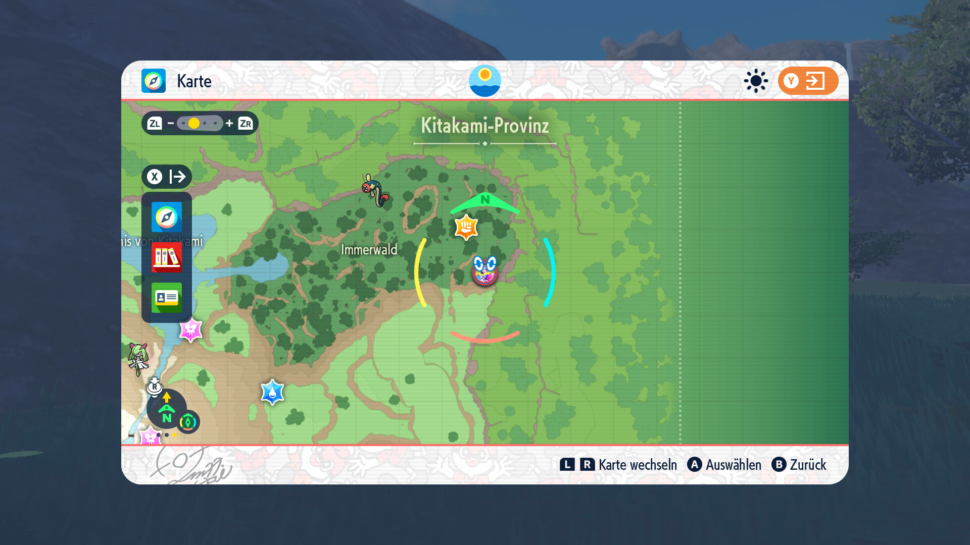 Der Immerwald ist ein Gebiet von Kitakami aus Pokémon Karmesin und Purpur. Es liegt im Nord-Osten der Insel.