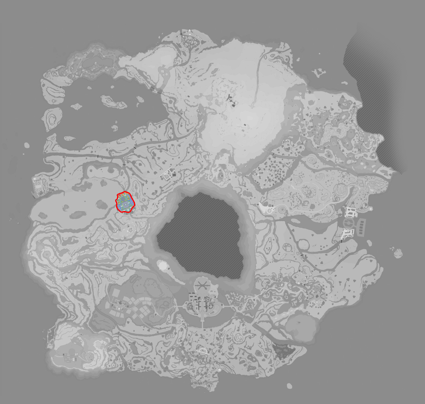 Ganz im Nord-Osten hinter zwei Häusern auf der mittleren Stadt-Ebene | |
