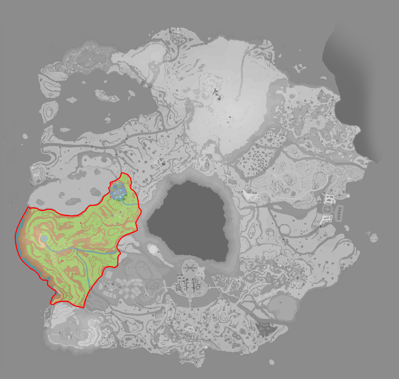| Im Norden vom kleinen See, der an den Fluss in der Zone grenzt. Dort, wo eine kleine braune Fläche innerhalb einer Grünfläche ist. In der Nähe von Terakristall-Lextremo | ||