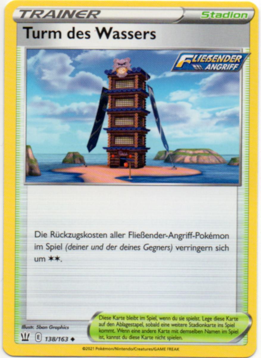 Zuletzt schauen wir uns die Kategorie an, die auf den meisten Decklisten den größten Anteil einnimmt: Trainerkarten. Auch hier gibt es eine ganze Reihe, die den beiden Kampfstilen zugeordnet sind. Darunter sind jeweils Items und Unterstützer, aber auch Stadionkarten, die Decks mit den jeweiligen Kampfstilen helfen. Wer den Schwert & Schild DLC durchgespielt hat, wird diese beiden ikonischen Orte – den Turm des Unlichts und den Turm des Wassers – auch direkt wiedererkennen.