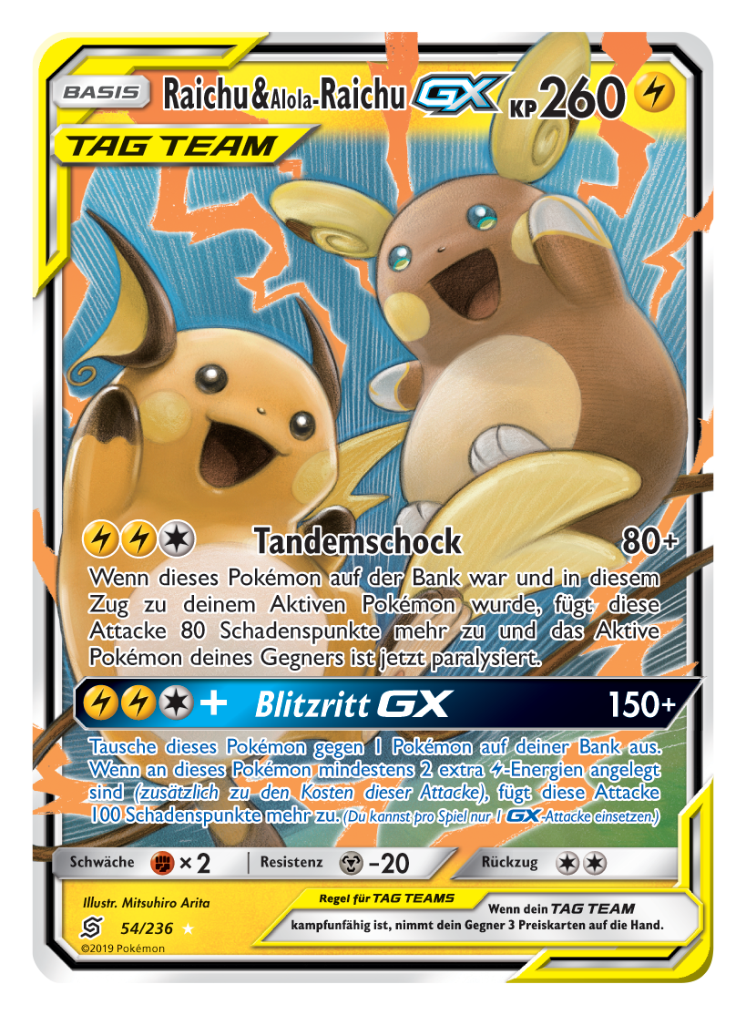 - 1x Raichu & Alola-Raichu TAG TEAM GX Bund der Gleichgesinnten 54/236