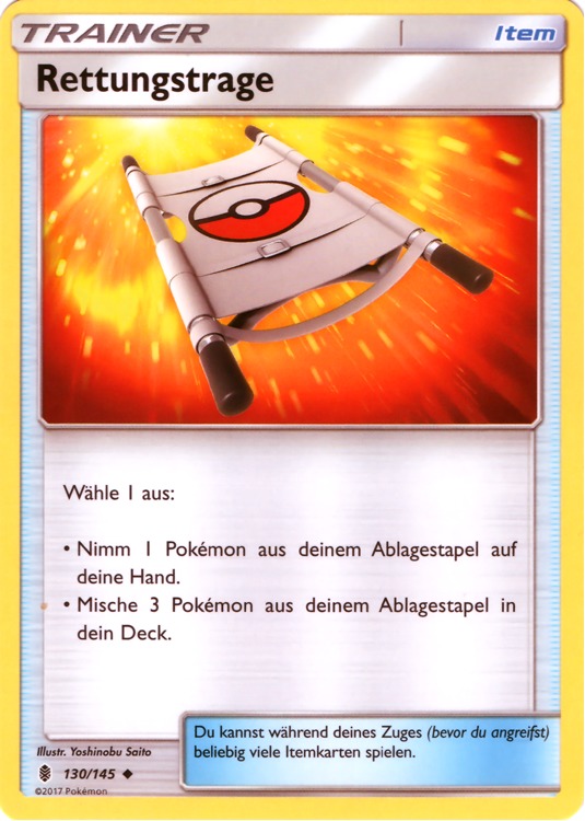 Sehr hilfreiche Karte, wird meistens benutzt um gegnerische Doppel-Farblos-Energien vom Spielfeld zu entfernen und gibt einem selber mehr Zeit sich aufzubauen.