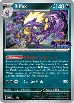McDonald's-Serie 2025 (Karmesin/Purpur) McDonald's-Serie 2023 (Karmesin/Purpur) McDonald's-Serie 2022 (Schwert/Schild) McDonald's-Serie 2021 (Schwert/Schild) 25. Jubiläum Wizards Black Star Promos Southern Islands Collection Nintendo Black Star Promos POP-Series McDonald's-Serie 2011 (Schwarz/Weiß) DP Black Star Promos Pokémon Rumble HGSS Black Star Promos BW Black Star Promos XY Black Star Promos SM Black Star Promos McDonald's-Serie 2018 (Sonne/Mond) McDonald's-Serie 2019 (Sonne/Mond) Meisterdetektiv Pikachu Let's Play-Themendecks SWSH Black Star Promos SV Black Star Promos ME Black Star Promos