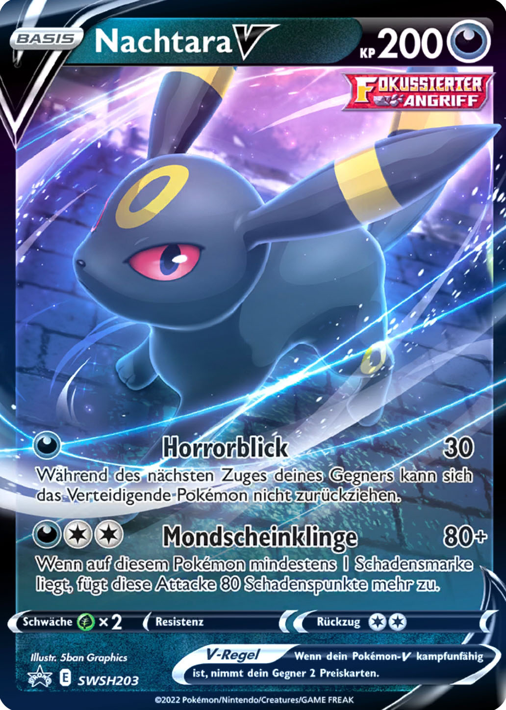 Hier findet ihr eine Übersicht der SWSH Black Star Promos. Dieses Promo-Set umfasst bisher weit eine bisher unbekannte Anzahl an Karten, die begleitend zum Schwert & Schild-Zyklus erscheinen werden. Nicht alle Promo-Karten aus dieser Reihe sind auf Deutsch erschienen. Die Kartennummer dieser Promokarten beginnt mit „SWSH“.