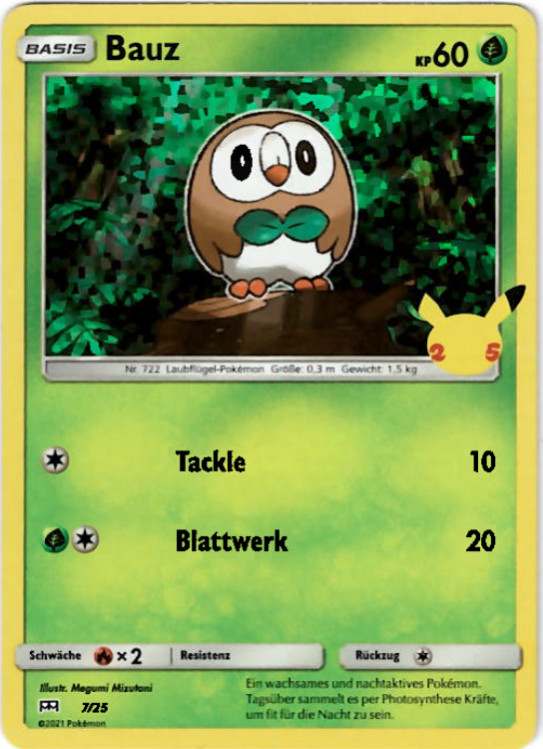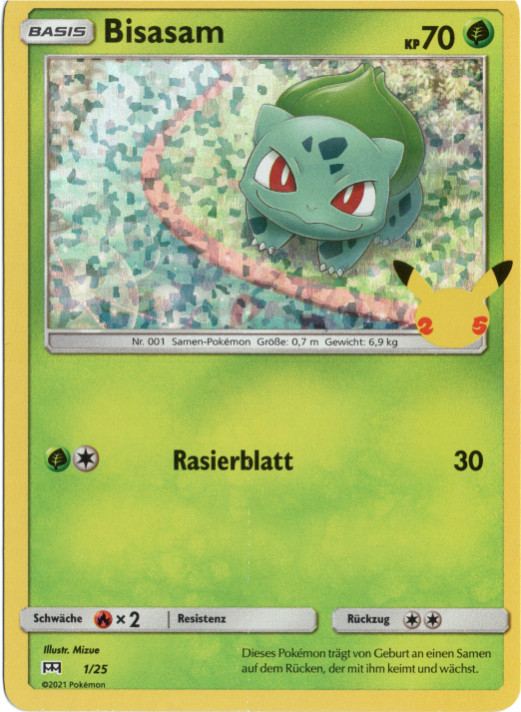 McDonald's-Serie 2025 (Karmesin/Purpur) McDonald's-Serie 2023 (Karmesin/Purpur) McDonald's-Serie 2022 (Schwert/Schild) McDonald's-Serie 2021 (Schwert/Schild) 25. Jubiläum Wizards Black Star Promos Southern Islands Collection Nintendo Black Star Promos POP-Series McDonald's-Serie 2011 (Schwarz/Weiß) DP Black Star Promos Pokémon Rumble HGSS Black Star Promos BW Black Star Promos XY Black Star Promos SM Black Star Promos McDonald's-Serie 2018 (Sonne/Mond) McDonald's-Serie 2019 (Sonne/Mond) Meisterdetektiv Pikachu Let's Play-Themendecks SWSH Black Star Promos SV Black Star Promos ME Black Star Promos