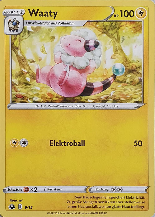 Die Karten selber sind Reprints von bereits gedruckten Karten aus dem Schwert & Schild-Zyklus. Insgesamt gibt es 15 unterschiedliche Karten wovon sechs Karten nur in einer Holo-Version und folglich 9 als Non-Holo erhältlich sind. Die so verfügbaren Holo-Karten sind: Bauz (2/15), Cottini (3/15), Fukano (4/15), Victini (5/15), Pikachu (7/15) und Farbeagle (15/15).