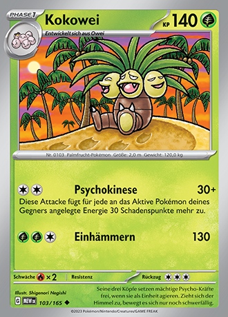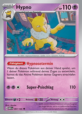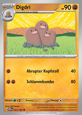 Die folgenden Karten sind in der 151-Erweiterung des Karmesin & Purpur-Zyklus enthalten und bereits bekannt. Um die schon veröffentlichten Kartenscans dieser Erweiterung anzusehen, könnt ihr in unsere Kartengalerie schauen.