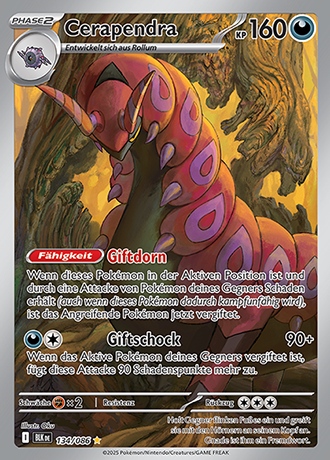 Die folgenden Karten sind in der Schwarze Blitze-Erweiterung des Karmesin & Purpur-Zyklus enthalten. Um die Kartenscans dieser Erweiterung anzusehen, könnt ihr in unsere Kartengalerie schauen.