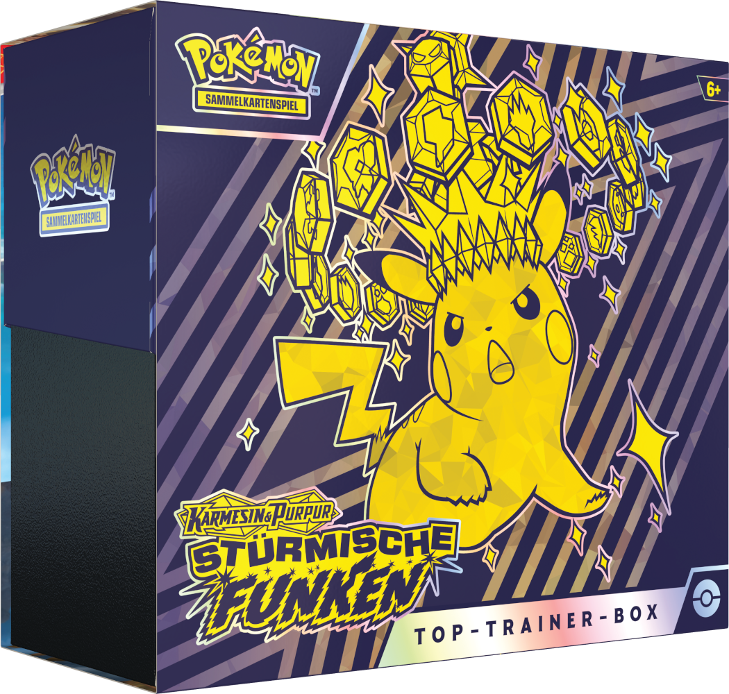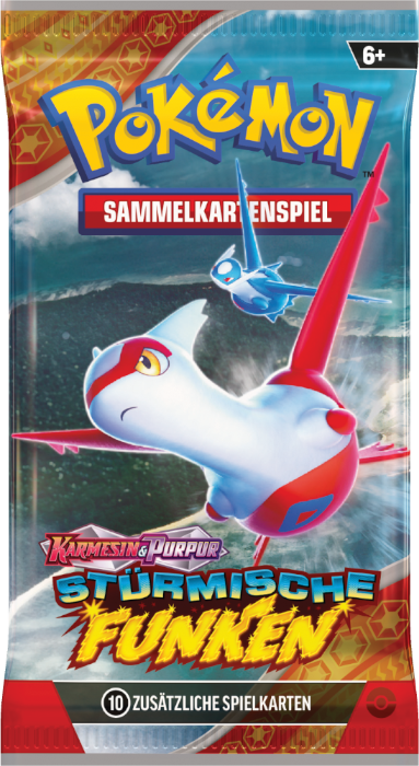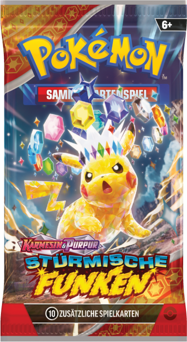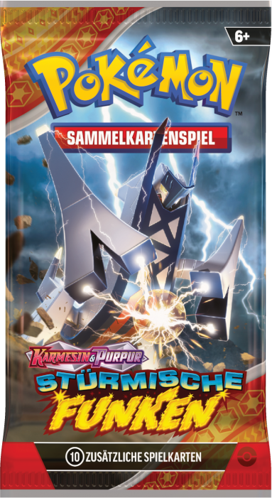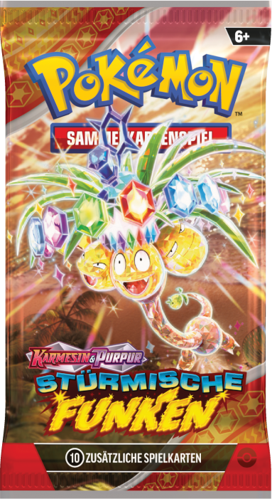 Stürmische Funken ist eine Erweiterung des Karmesin & Purpur-Zyklus des Pokémon Sammelkartenspiels und umfasst über 250 Karten. Die Erweiterung erscheint am 8. November 2024. Dieses Set umfasst eine Karte zu Alola-Kokowei-ex in seiner Stellarform. Dieses Set wird durch Booster, eine Top-Trainer-Box und weiteren Kollektionen erhältlich sein.