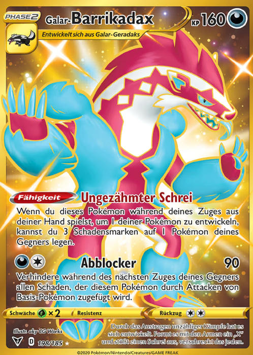 Auf dieser Seite stellen wir die Karten aus der Erweiterung von Schwert & Schild - Farbenschock vor. Insgesamt sind 203 Karten in diesem Set enthalten, darunter 11 Pokémon-V, sechs Pokémon-VMAX, mehr als 15 Trainerkarten sowie vier Spezial-Energiekarten.