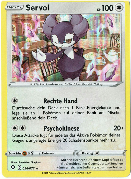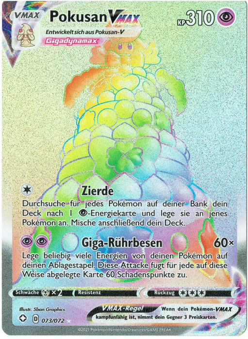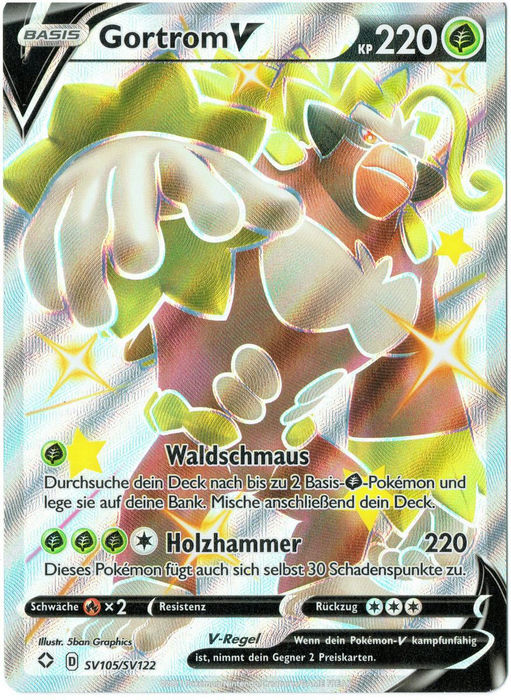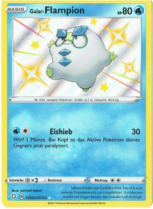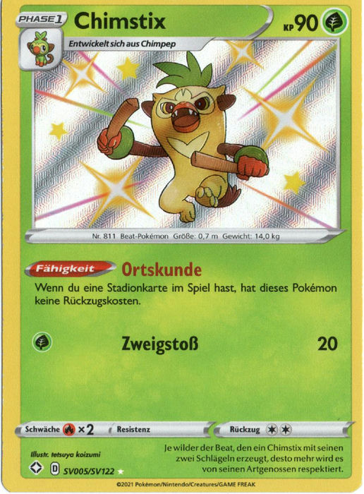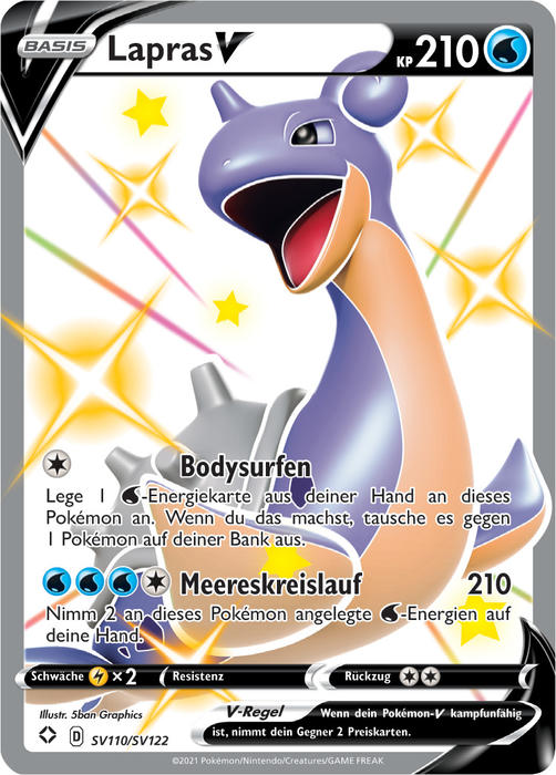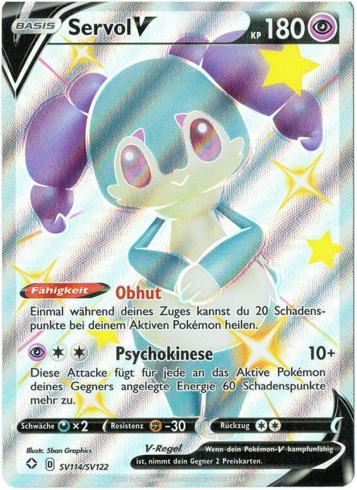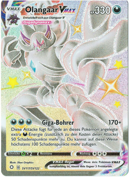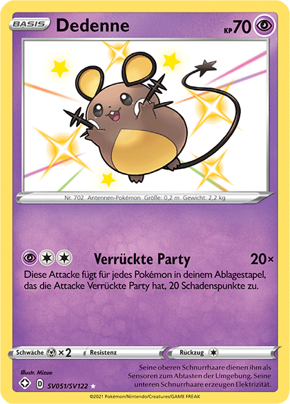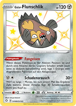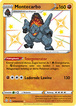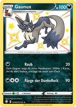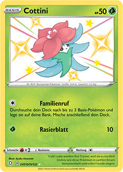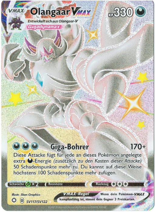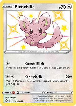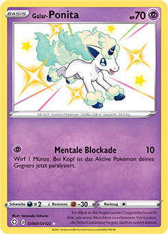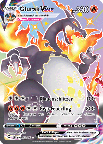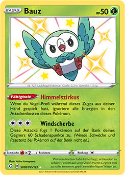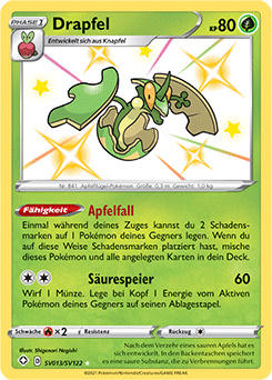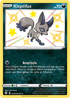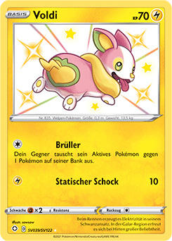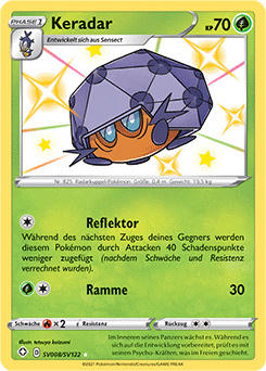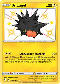 Auf dieser Seite stellen wir die Karten aus der Zusatz-Erweiterung Schwert & Schild - Glänzendes Schicksal vor. Insgesamt sind über 190 Karten in diesem Set enthalten, 73 reguläre sowie 122 Schillernde Pokémon (Shiny Vault, kurz SV). Mit dabei sind drei Atemberaubende Pokémon und mehr als 30 Pokémon-V und Pokémon-VMAX. Darunter sind wiederum neun Schillernde Pokémon-V und sieben Schillernde Pokémon-VMAX. Die Erweiterung kann lediglich über spezielle Kollektionsboxen gekauft werden.