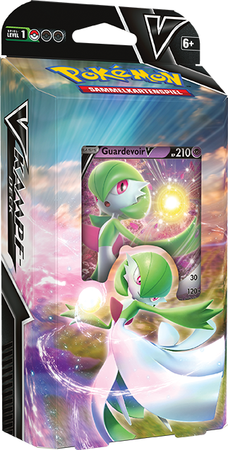 Passend zur Erweiterung Schwert & Schild - Kampfstile gibt es zwei V-Kampfdecks, die im Zeichen von Victini und Guardevoir stehen.