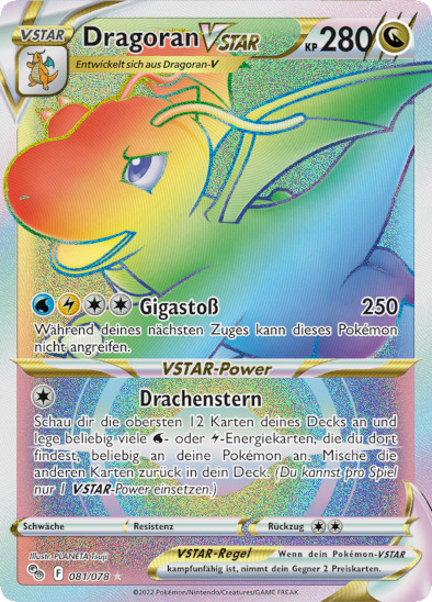 Die folgenden Karten sind in der Erweiterung Schwert & Schild - Pokémon GO enthalten. Insgesamt sind mehr als 78 Karten in diesem Set enthalten, darunter sowohl verschiedene Pokémon V-Karten als auch VStar-Karten. Bilder von den Karten könnt ihr in unserer Kartengalerie anschauen.