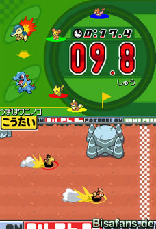 - Lauft mit euren drei Pokémon in das Ziel, achtet unterwegs aber auf plötzlich auftauchende Hindernisse!