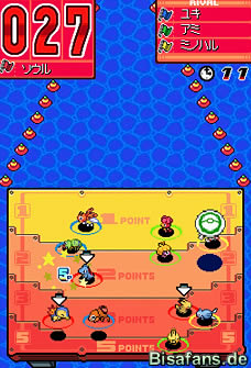 - Besetzt die markierten Kreise im Ring mit euren drei Pokémon, um Punkte zu erhalten. Leider haben die neun Gegner die gleiche Idee, so dass ihr euch durchsetzen müsst.