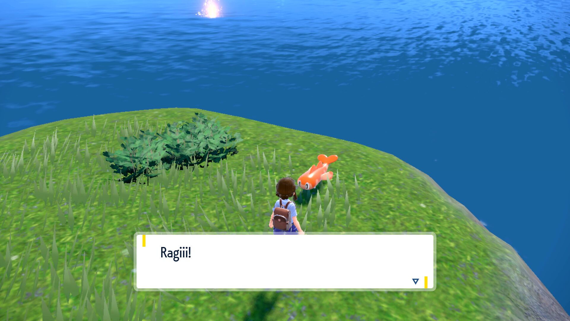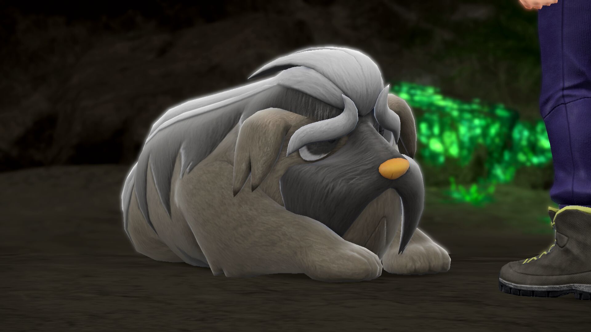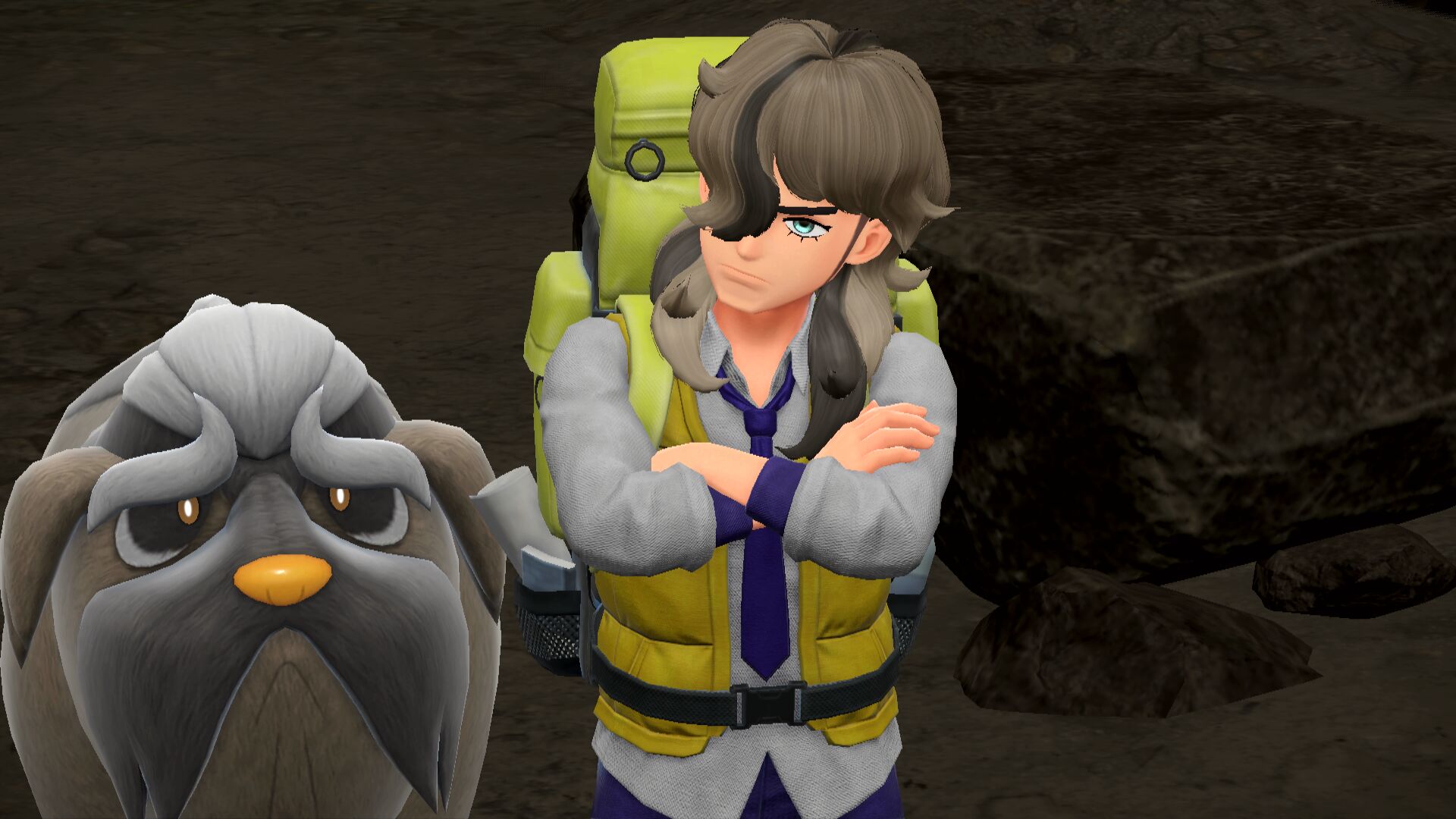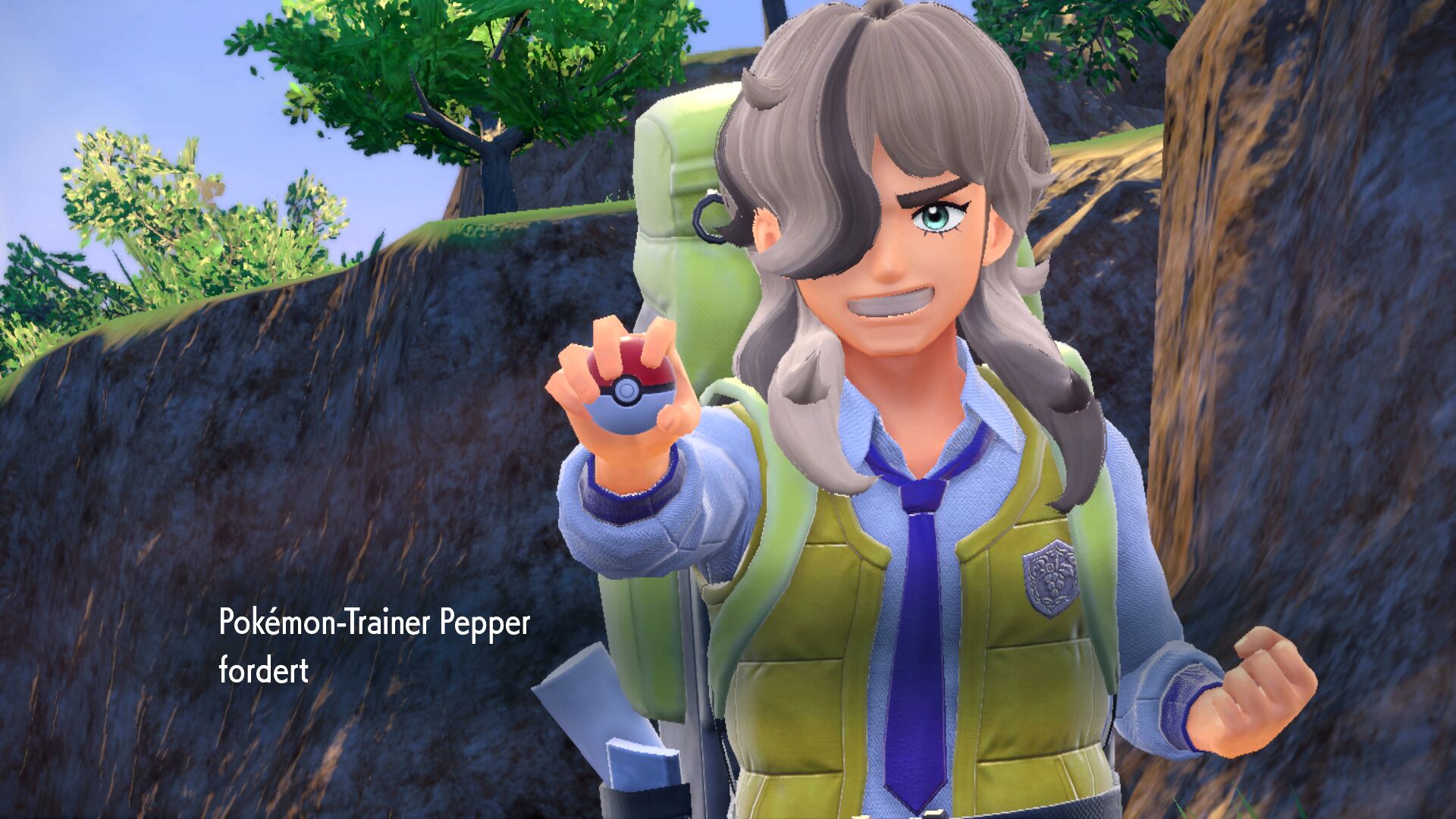 Sobald wir von Mesalona City nach Osten gehen, erhalten wir etwa auf halbem Weg nach Bolardin einen Anruf von Pepper. Er hat uns einen Ort an einer Steinmauer markiert, den wir absuchen sollten. In der Nähe sollte gleich ein deutlich größerer Klibbe merklich in der Umgebung auffallen. Das ist unser gesuchtes Herrscher-Pokémon.