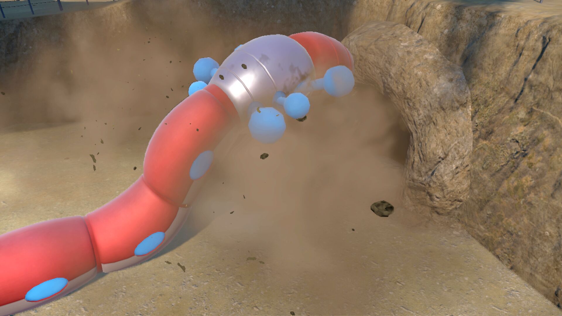 Solltet ihr schon einmal durch die Brutzelwüste gereist sein, ist euch an einem bestimmten Ort eventuell ein sehr großes, herumrollendes Pokémon aufgefallen, das eine Staubwolke hinterlässt. Hierbei handelt es sich je nach gewähltem Spiel um ein exklusives Pokémon und darüber hinaus um den nächsten zu bezwingenden Gegner.