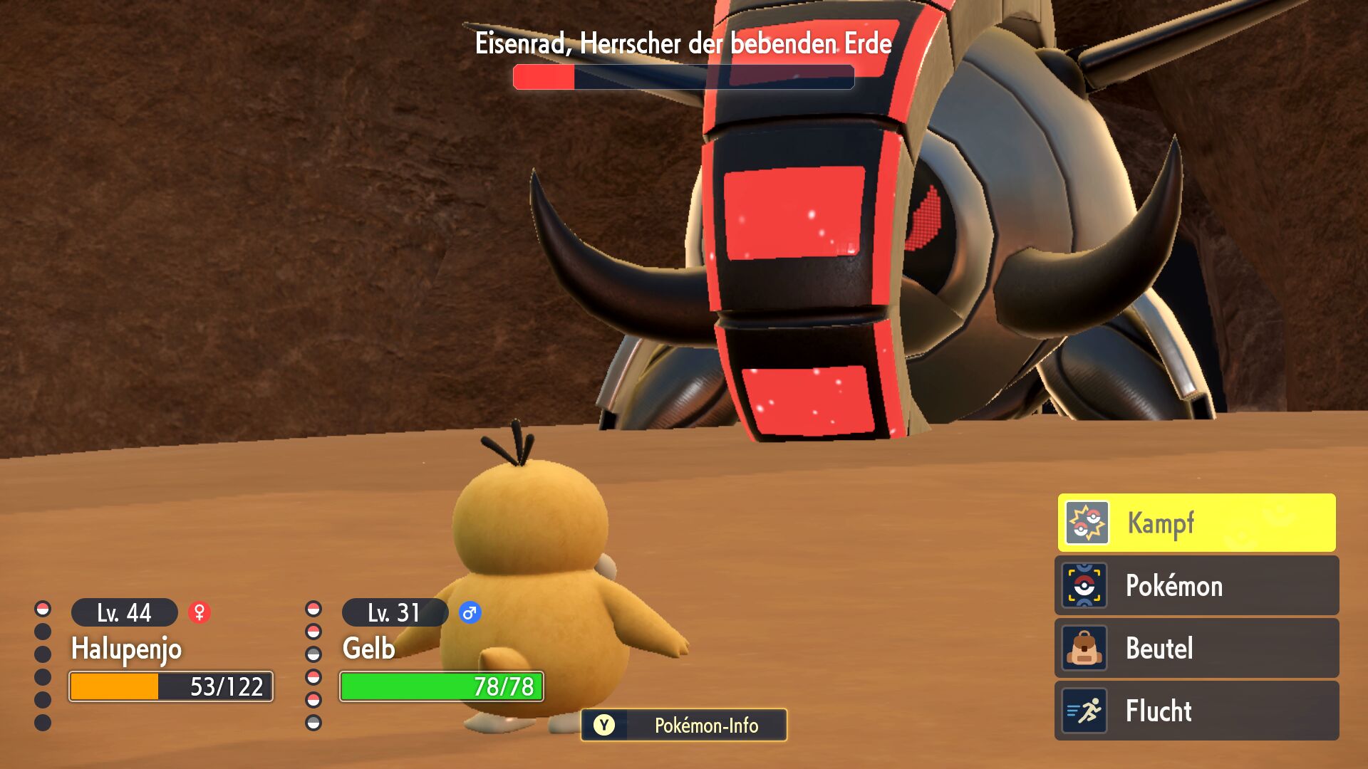 In Pokémon Karmesin bekämpfen wir Riesenzahn, in Pokémon Purpur hingegen Eisenrad. Der größte Unterschied besteht in ihren Typen, die unterschiedliche Taktiken erfordern. Riesenzahn lässt sich durch den zusätzlichen Kampf-Typ sehr gut mit speziellen Wasser-, Flug und Feen-Attacken treffen. Mit Eisenrads zusätzlichem Stahl-Typ sind Boden-Pokémon am besten geeignet, während Feuer-Pokémon durch den Fruststampfer recht gefährdet sind.