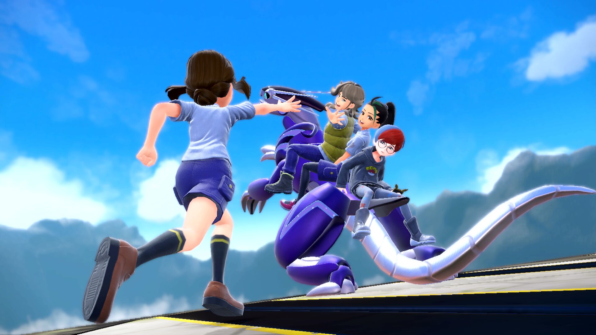 Sobald alle drei Wege erledigt wurden, ruft Pepper an, dass wir uns bitte zum Eingang des Schlunds von Paldea begeben sollen. Wir erinnern uns, dass wir mit ihm und zwei weiteren Personen in die Zone Null vordringen wollten, sobald sie angeworben wurden. Daher begeben wir uns nach Mesclarra und gehen Richtung Südosten zum aufragenden Gebirge. Dort befindet sich ein offenes Tor, das bis zum Erreichen dieses Punktes verschlossen war und den Eingang zum Schlund von Paldea darstellt. Pepper begrüßt uns außerhalb eines Gebäudes und sobald wir es betreten, lernen wir auch die beiden weiteren Mitglieder dieser Mission kennen: Nemila und Cosima. Nachdem wir vom Professor instruiert wurden, aufgrund eines fehlenden Aufzuges mit Miraidon in die Zone Null zu gelangen, nehmen nach und nach alle Charaktere auf ihm Platz. Widerwillig zeigt es sich bereit, in die Tiefe zu gleiten, bis wir schließlich wieder festen Boden unter den Füßen haben.