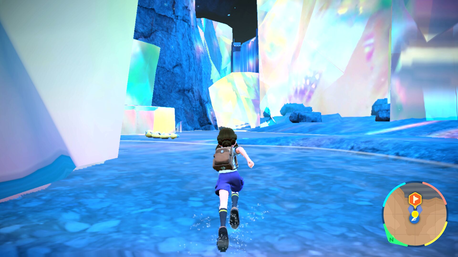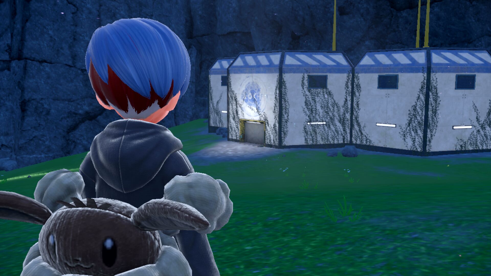Am Grund angekommen entdecken wir schon bald den großen Eingang zum Labor, in dem sich der Professor befindet. Wir werden darüber hinaus darauf hingewiesen, dass wir uns gut vorbereiten sollen, bevor wir den Eingang öffnen. Sobald der Knopf gedrückt wird, taucht plötzlich ein zweites Miraidon auf. Unser Partner, der sich währenddessen aus seinem Pokéball befreit hatte, ist von dessen Präsenz eingeschüchtert und das offenbar feindlich gesinnte Pokémon verschwindet in das Labor Null. Kurz darauf laufen mehrere der neuartigen, als Paradox-Pokémon bekannten Wesen aus dem Labor und umzingeln uns. Es bleibt wohl nichts anderes übrig, als sie alle zu bekämpfen. Wir werden dabei hintereinander von jeweils einem anderen Partner unterstützt.
