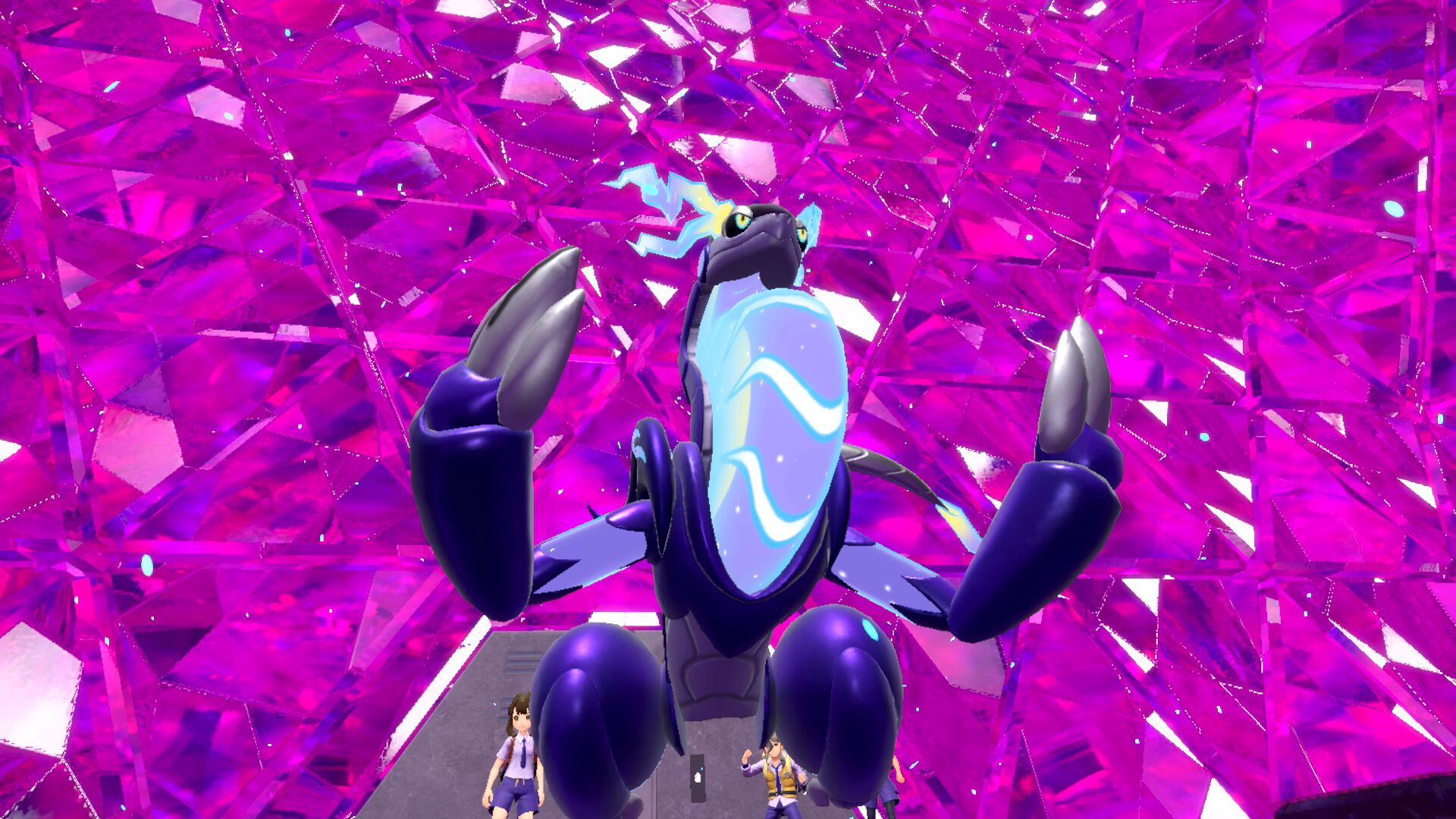 Um die Zeitmaschine abzuschalten, ist es notwendig, das Karmesin- oder Purpurbuch zu besitzen, da es einen wichtigen Schlüssel darstellt. Allerdings enthält die KI ein Offensivprogramm, das sich aktiviert, sobald die Zeitmaschine gestoppt werden würde. Wir sollen sie nun bekämpfen und damit dem Vorhaben, Pokémon aus anderen Zeiten in die Gegenwart zu bringen, ein Ende zu setzen. Wir nehmen uns dem natürlich an und erhalten sogleich eine Kostprobe sämtlicher Paradox-Pokémon der jeweiligen Spiele. Sämtliche Pokémon befinden sich übrigens in Meisterbällen.