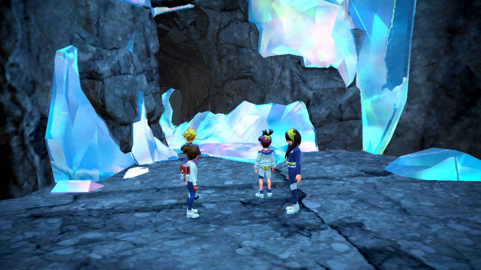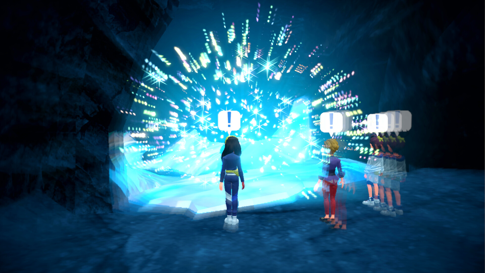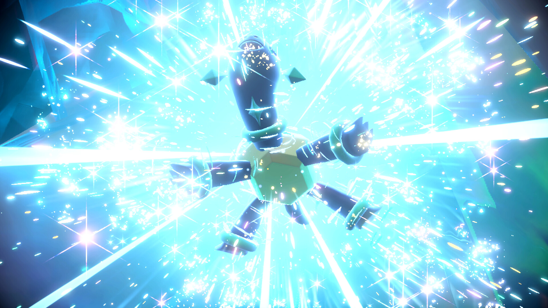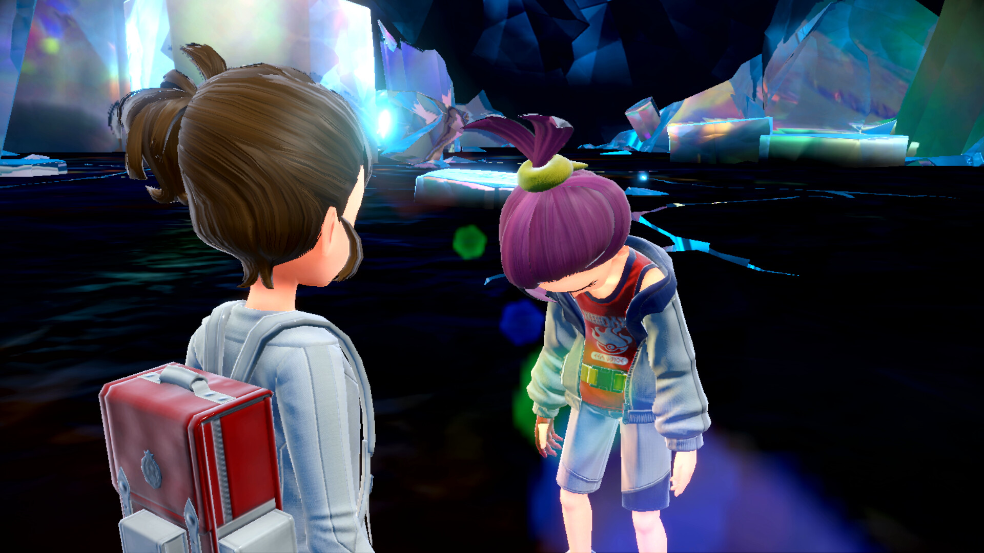 Der Kristall, der den Pfad versperrt hat, verschwindet und wir können weiter. Ab diesem Zeitpunkt ist es notwendig, in jedem Gebiet ein Pokémon mit dem Tera-Typ Stellar zu besiegen. Aus der Ferne sind sie immer durch ein Leuchten erkennbar, ähnlich wie die Tera-Pokémon auf der Overworld.