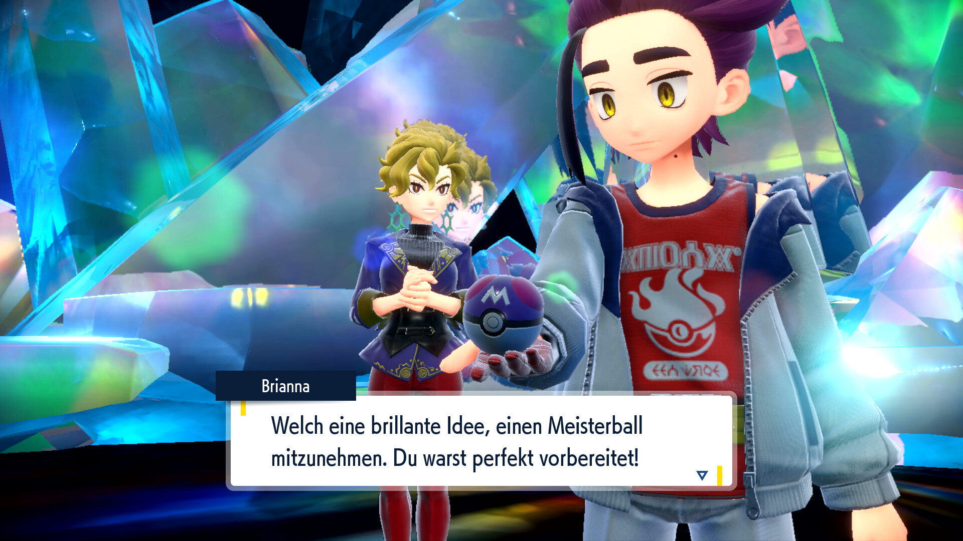Am tiefsten Punkt angelangt beginnt der Terakristall-Orb zu leuchten. Im kommenden Abschnitt ist die Kristallisierung der Höhle noch stärker, wobei auf einem Podest ein besonderer Stein zu finden ist. Brianna denkt, dass es sich dabei um Terapagos handelt und Jo zieht ihn heraus. Aus dem Kristall manifestiert sich schließlich das Pokémon und geht langsam auf uns zu. Jo wirft panisch einen Meisterball und fängt Terapagos dadurch sofort. Anschließend möchte Brianna eine Kostprobe seiner kämpferischen Fähigkeiten sehen. Somit dürfen wir erneut gegen Jo kämpfen.