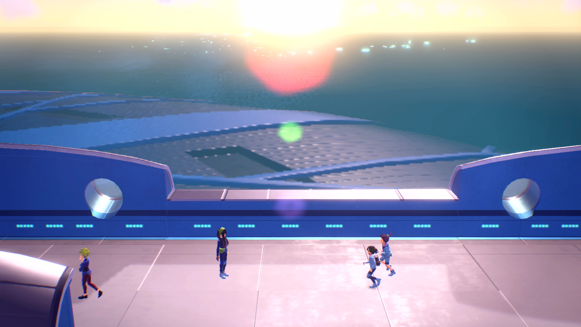 Sobald wir bereit sind, treffen wir uns mit Brianna, Hana und Jo beim Haupteingang der Akademie. Gemeinsam machen wir uns zum Schlund von Paldea auf.