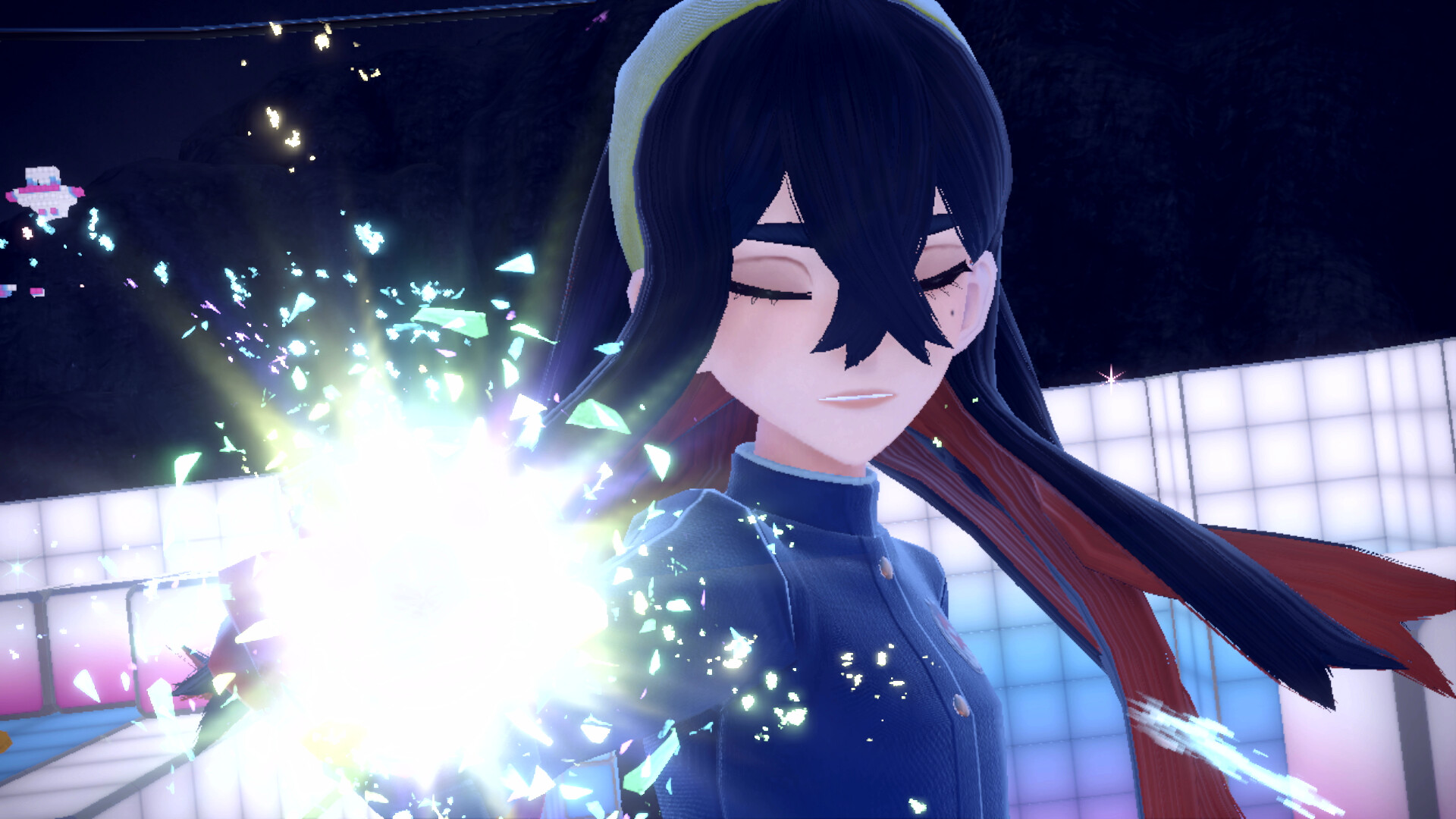 Hana unterstützt uns in diesem Kampf mit ihrem Fatalitcha. Das Ziel ist hierbei, dreimal zu terakristallisieren und Terapagos’ Schilde zu reduzieren. Nach jedem entfernten Schild absorbiert es die Terakristall-Energie und wechselt den Typ, der gegen es effektiv ist. Zu Beginn besitzt Terapagos den Typ Normal, danach Psycho und zum Schluss Wasser. Achtet also darauf, ein ausgewogenes Team mitzunehmen und den starken Angriffen des Gegners standzuhalten.