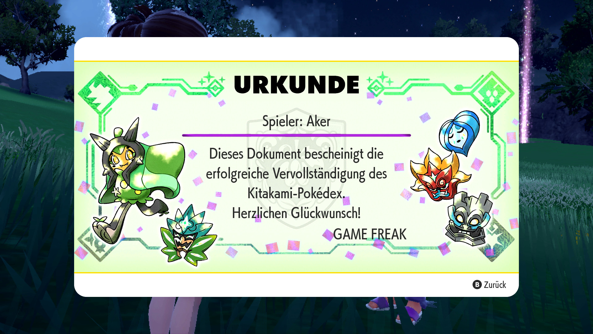Der Glitzerpin ist ein Item, welches erstmals mit dem Erscheinen des ersten Teils des DLCs zu Pokémon Karmesin und Purpur veröffentlicht wurde. Er bewirkt, dass ein weiterer Belohnungsslot für Tera-Stücke bei Tera-Raid-Kämpfen freigeschaltet wird. Das bedeutet somit, dass - je nach Raid-Stufe - bis zu zehn weitere Tera-Stücke erhalten werden können. Der Glitzerpin kann jedoch erst erhalten werden, wenn alle 200 Pokémon aus dem Kitakami-Pokédex erfolgreich gefangen wurden. Ist dies geschafft, erwartet euch Señor Jim auf em Pfad des Tanzes unter einem Baum nahe Midoriya und schenkt euch dort nicht nur eine Urkunde, sondern auch den Glitzerpin.