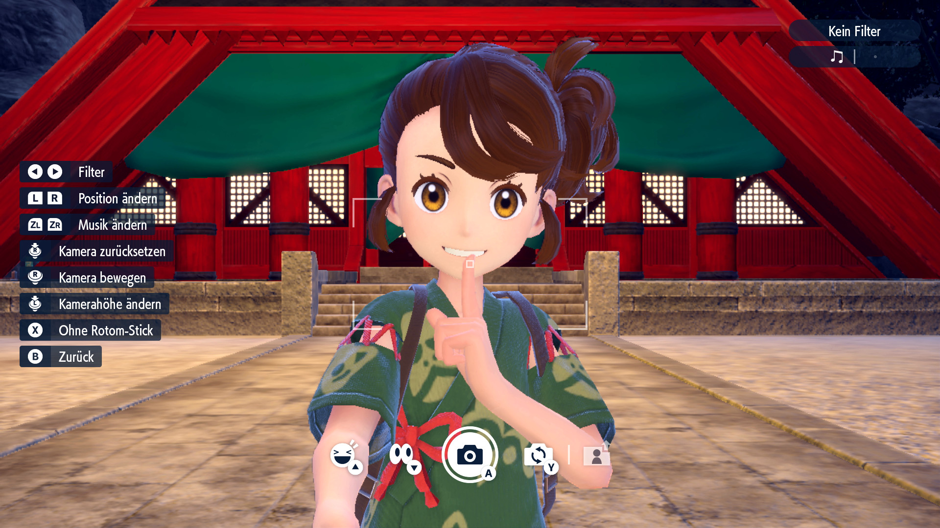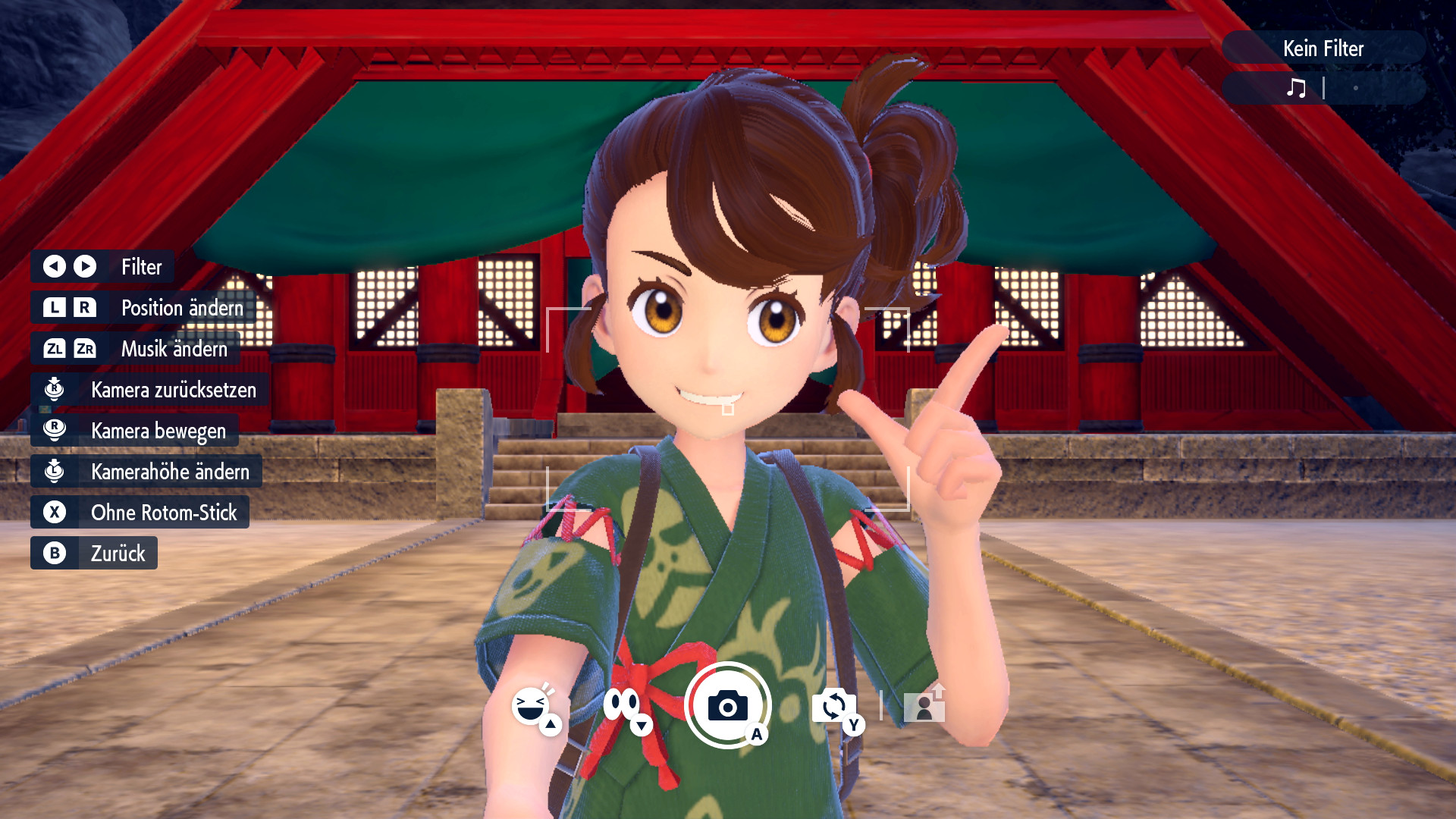 Durch das Erscheinen von "Die Türkisgrüne Maske" für Pokémon Karmesin und Purpur wird Kitakami als neues Gebiet freigeschaltet. Auf dieser Insel können verschiedene neue Posen und Selfie-Posen von Personen erlernt werden. Eine Pose kann vom Spielercharakter eingenommen werden, indem Steuerkreuz nach oben gedrückt und dort eine Pose ausgewählt wird. Ein Gesichtsausdruck kann im Kameramodus (Steuerkreuz nach unten) für ein Foto ausgewählt werden.