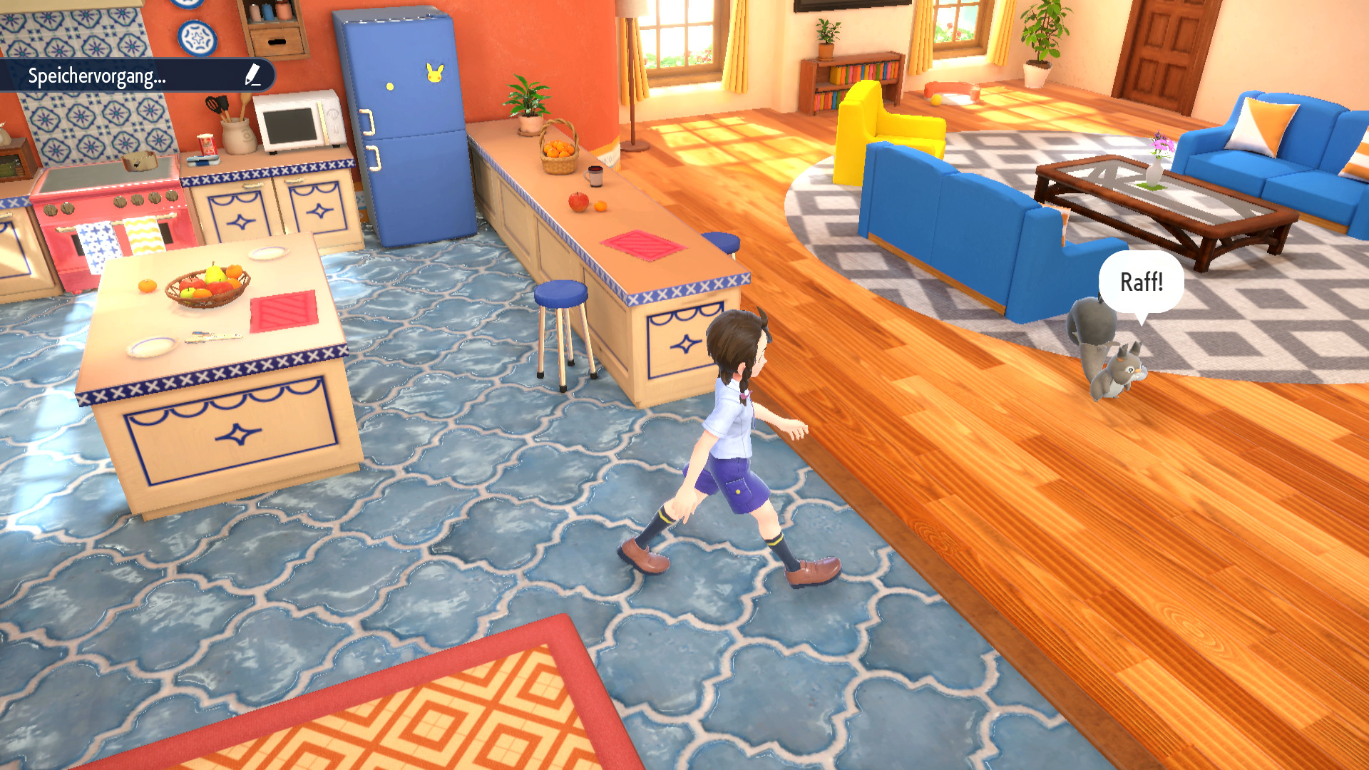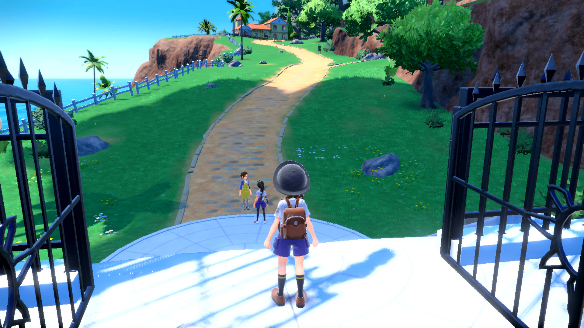 Nachdem wir zuerst die Sprache ausgewählt und unseren Charakter erstellt haben, starten wir sogleich ins Abenteuer. In unserem Heimatort Cucharico bereiten wir uns gerade in unserem Zimmer darauf vor, bald den Weg zur Akademie anzutreten. Nach einem kurzen Gespräch mit Mutter in der Küche besucht uns jedoch Clavel, der Direktor der Akademie, höchstpersönlich. Sobald wir Mütze und Rucksack geholt und das Haus verlassen haben, erhalten wir von Mutter noch ein Sandwich als Wegzehrung. Clavel stellt uns währenddessen die ersten drei Partner-Pokémon der Paldea-Region vor: Felori, Krokel und Kwaks. Wir sollen mit ihnen einen Spaziergang zum benachbarten Haus machen und uns dort wieder mit Clavel treffen. Auf dem Weg können wir die drei Pokémon näher kennenlernen.