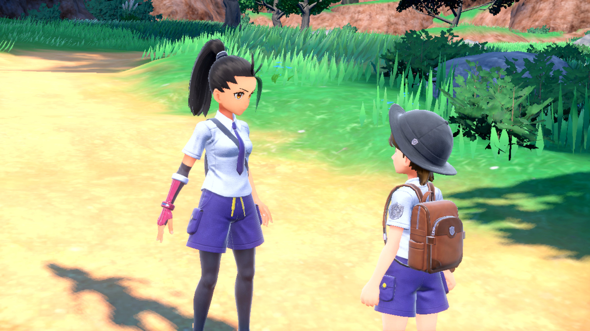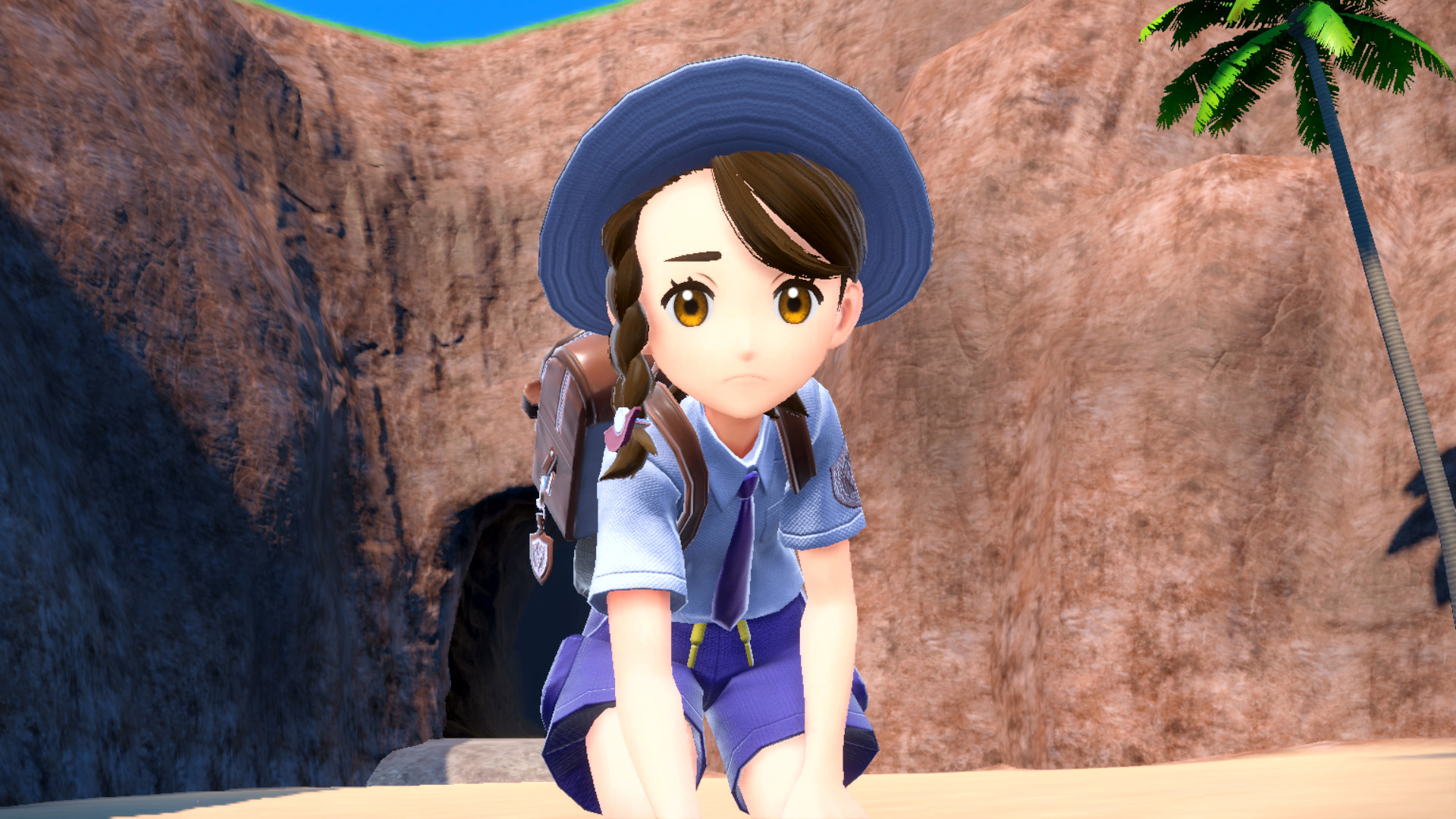 Bis wir den südlichen Haupteingang von Mesalona City erreicht haben, können wir uns nun im größten Teil der südlichen Zone von Paldea umsehen. Die übrigen Gebiete können noch nicht erreicht werden, da sich dort hohe, unüberwindbare Felswände befinden. Beim großen Tor vor der Akademiestadt treffen wir erneut Nemila, die sich von unserem neuen Team in einem Kampf überzeugen möchte. Dabei setzt sie zum ersten Mal die Terakristallisierung ein, mit der ein Pokémon für die Dauer eines Kampfes den Typ wechselt.