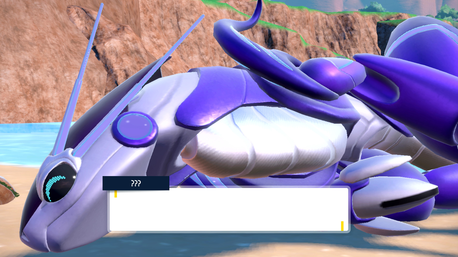 Unser nächstes Ziel wird aber der nahe Leuchtturm sein, dessen Spitze wir erklimmen sollen. So weit kommen wir allerdings nicht, da in der Nähe eines zerbrochenen Zauns ein lauter Schrei ertönt. Mutig wie wir sind gehen wir zur nahen Klippe und entdecken am darunter liegenden Strand ein merkwürdiges Pokémon, das von zwei Hunduster bedroht wird. Durch einen weiteren Schrei verschwinden nicht nur die Hunduster, sondern wir fallen auch von der Klippe. Glücklicherweise hilft unser Smart-Rotom, dass wir sanft landen können, und wir nähern uns danach dem geschwächten Pokémon.