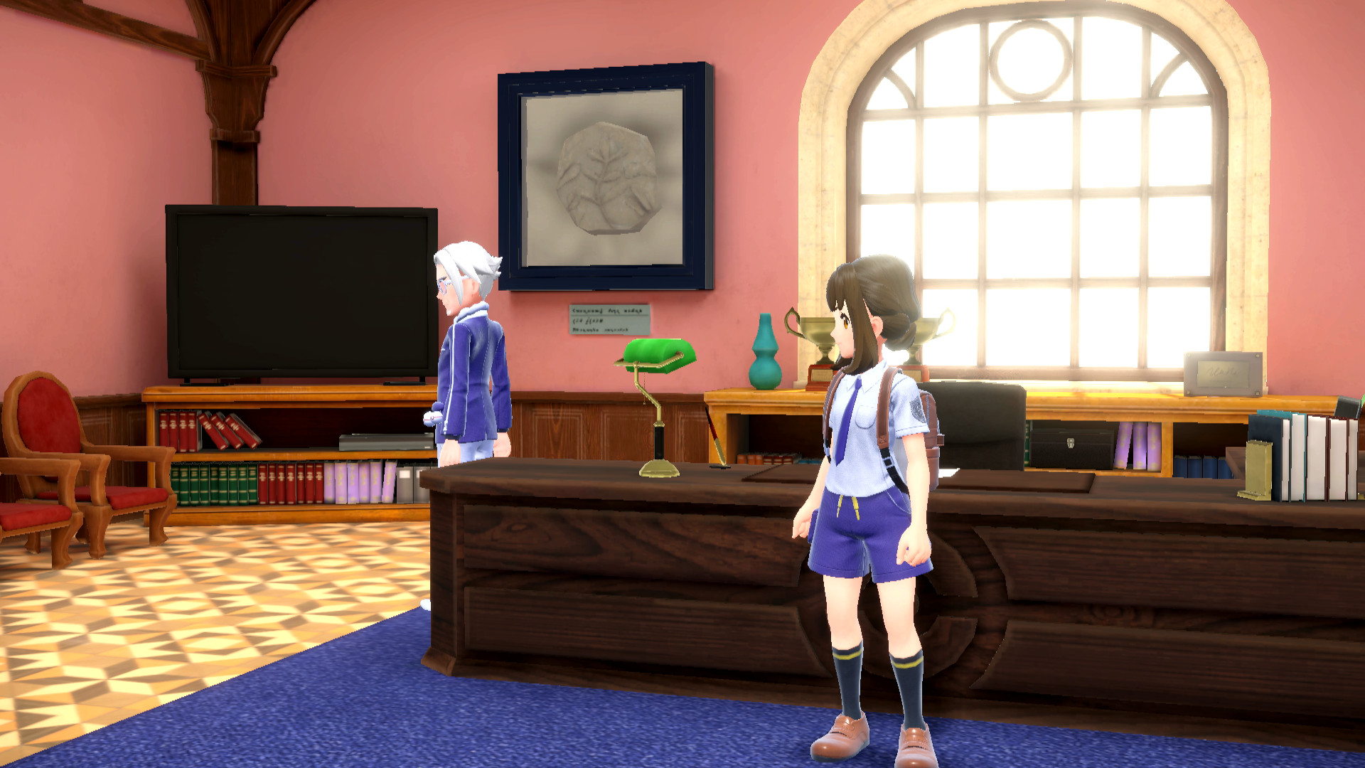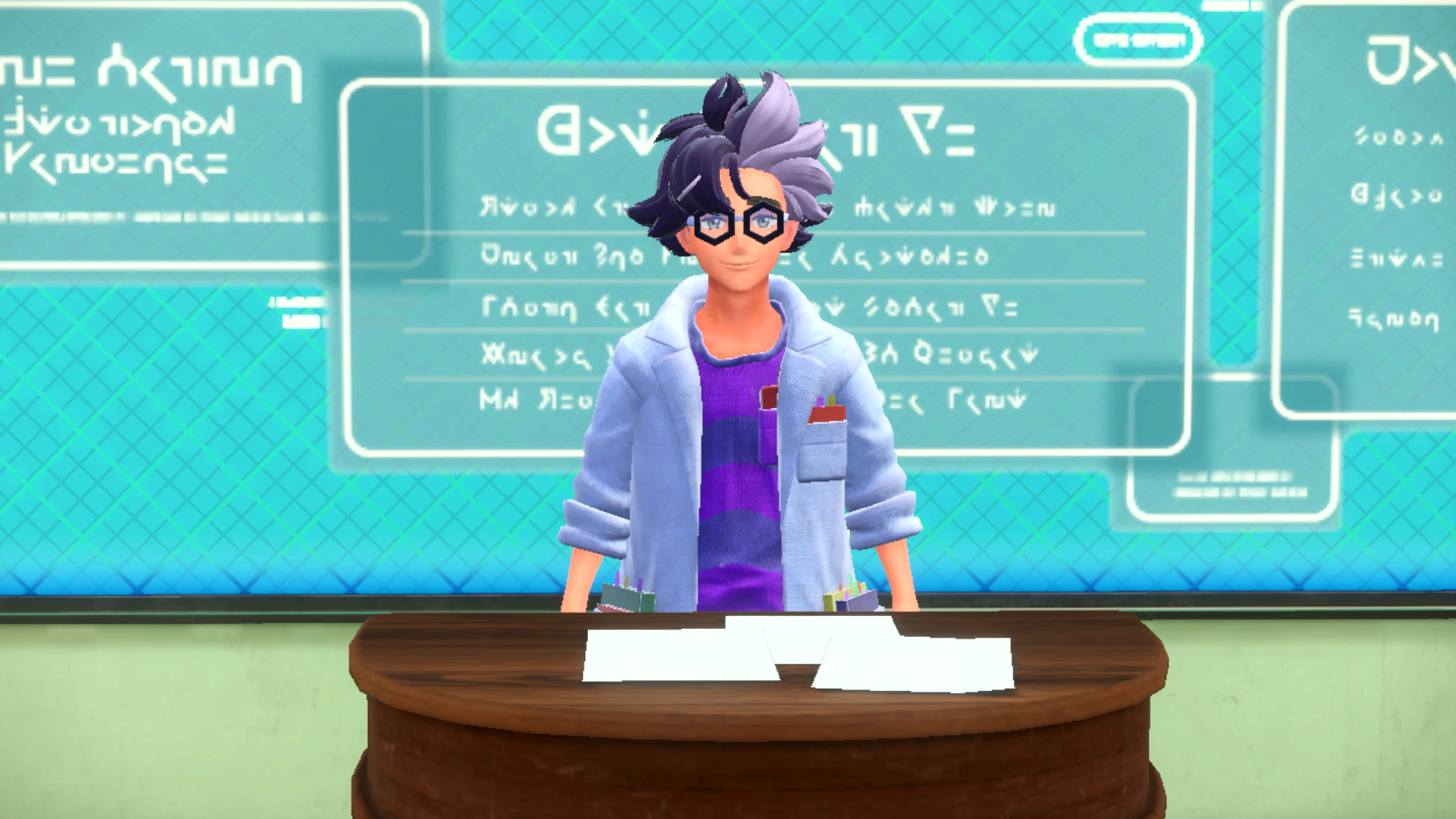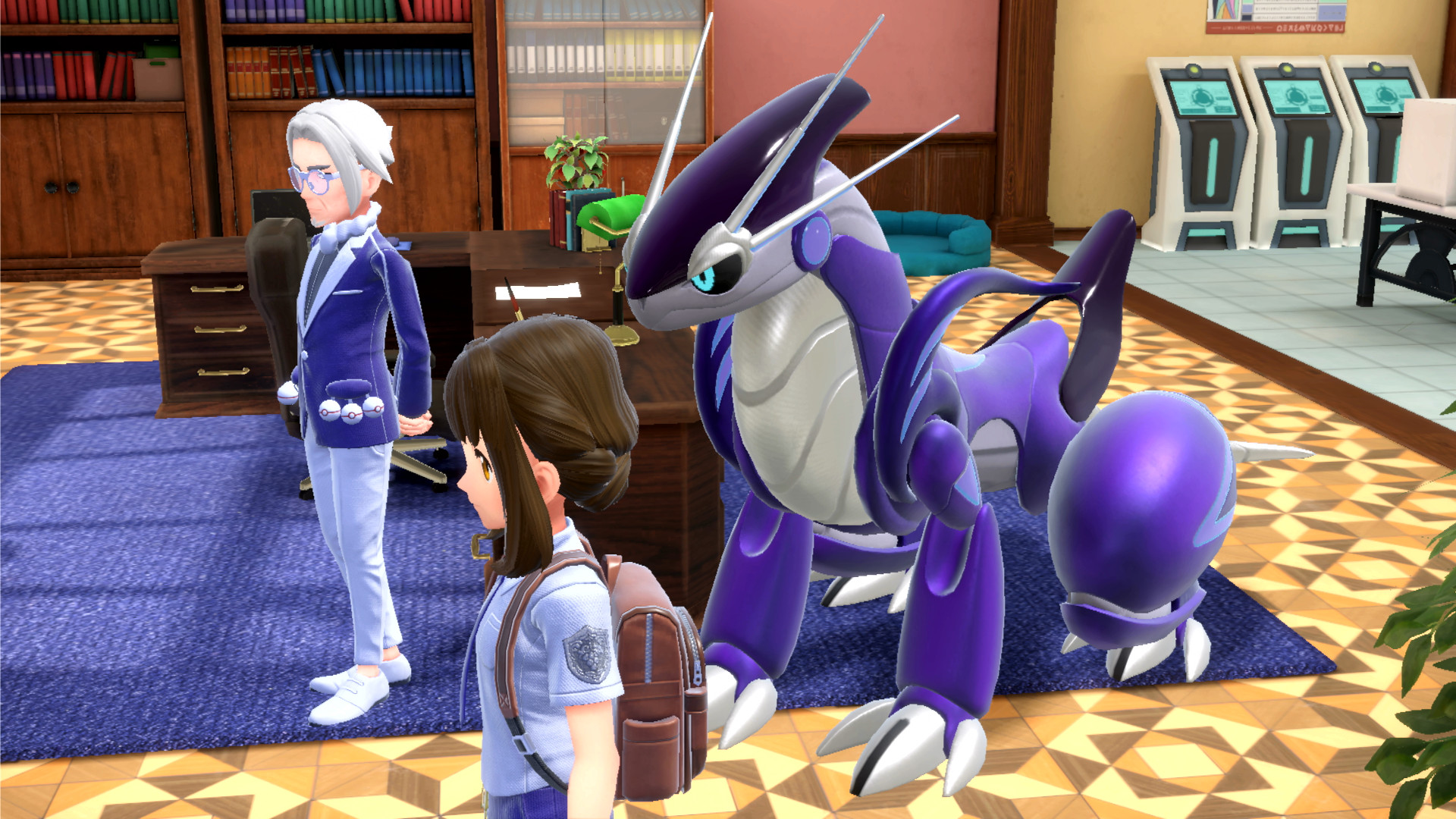 Zuletzt möchte uns auch Direktor Clavel sprechen. Er fragt uns nach unserem Wohlbefinden an der Akademie und verbindet uns daraufhin mit dem Professor der Region, der sich im Schlund von Paldea, der Zone Null, aufhält. Wir erfahren, dass sich Miraidon mitsamt des von Pepper gegebenen Pokéballs ursprünglich in der Obhut des Professors befand und erhalten nun die Aufgabe, uns um das Pokémon zu kümmern. Dank seiner Reitform sollen wir so größere Strecken mit Leichtigkeit zurücklegen können. Nach dem Austausch der Kontaktdaten wird uns der Professor in Zukunft auch immer wieder kontaktieren.