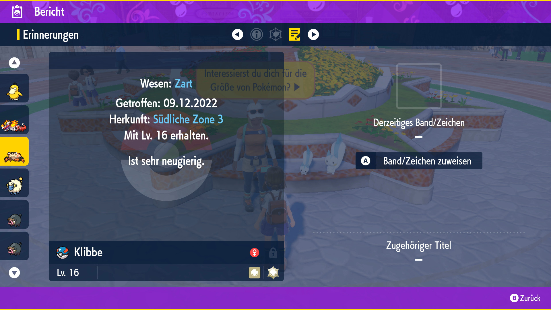 ob ein Pokémon ein Zeichen trägt oder nicht. Welches Zeichen getragen wird, ist jedoch nicht ersichtlich. Alle Informationen zum Freischalten der Erweiterung