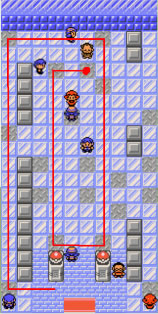 Nun könnt ihr endlich zur Arena! Norbert setzt Eis-Pokémon an. Also sind Feuer-, Gestein-, Kampf- und Stahl-Pokémon sehr effektiv. Eure Pokémon sollten mindestens auf Level 29 sein, um problemlos durch die Arena zu kommen. Die obere Grafik kann euch helfen, den richtigen Weg zu finden. Von Norbert erhaltet ihr nach eurem Sieg den Eisorden sowie die TM16 Eissturm.