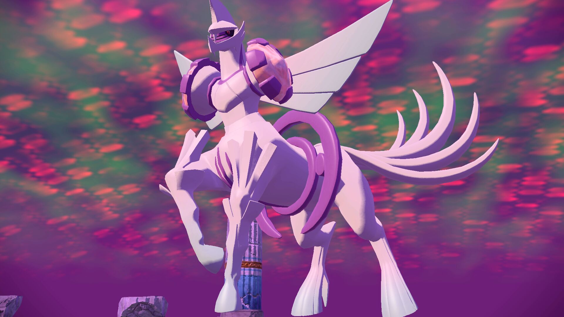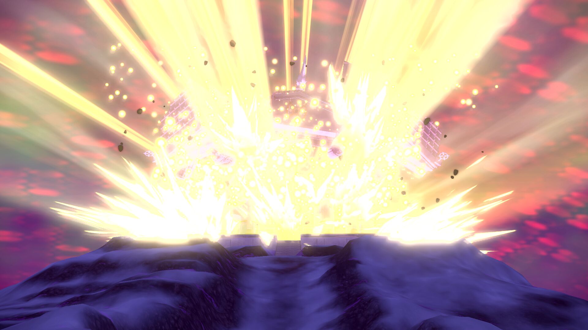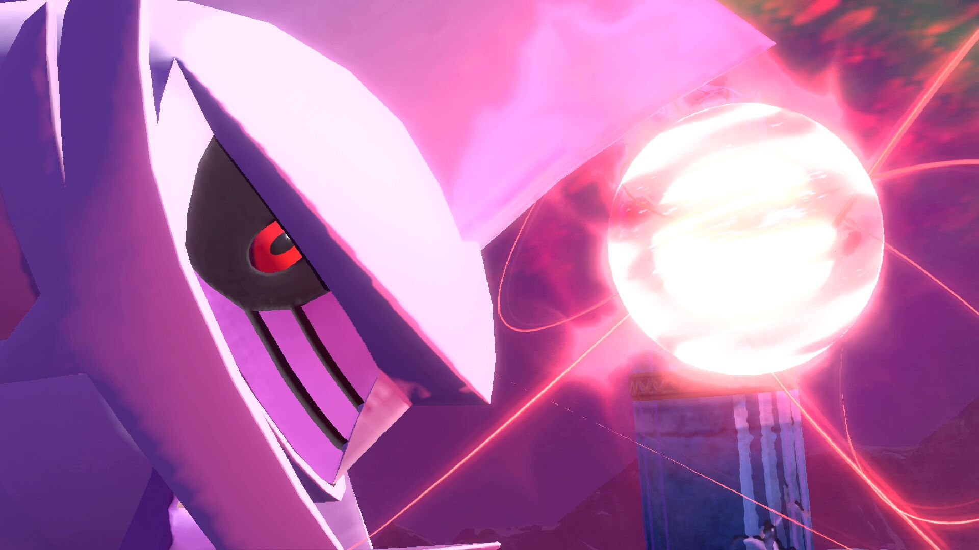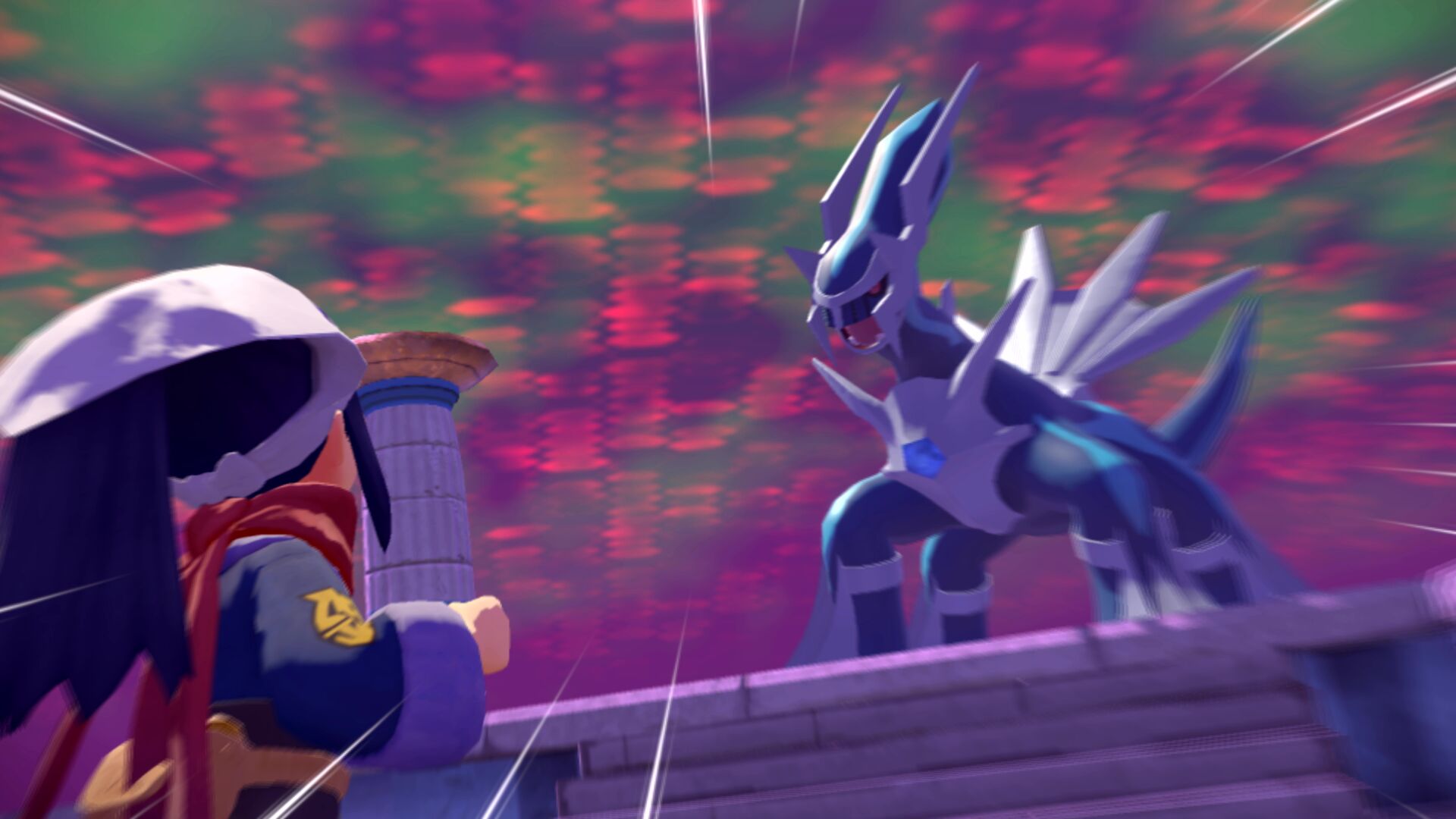 Zurück beim Sinnoh-Tempel werden wir bereits vom anderen Pokémon erwartet. Während dieses Energie entlädt, befreit sich unser Ehrwürdiges Sinnoh und beschützt uns vor einer größeren Explosion, die den umliegenden Tempel zerstört. Innerhalb der Ruinen hat das feindliche Pokémon seine Form gewechselt und es liegt nun an uns, es mit Ruhegaben zu besänftigen.