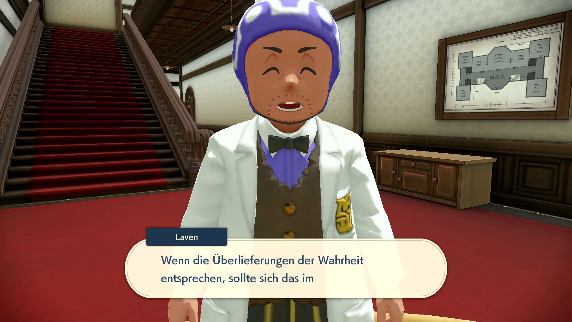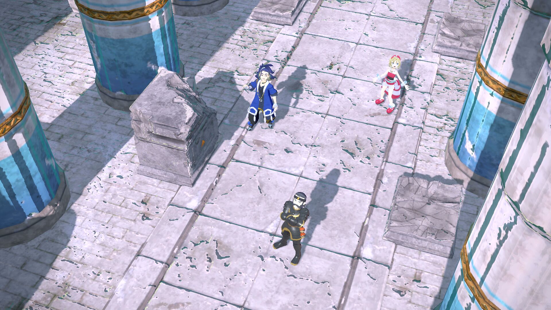 Nun überwältigt bittet Denboku um Vergebung. Er habe sich in uns geirrt und ist nun überzeugt, dass wir etwas gegen den Riss im Raum-Zeit-Gefüge unternehmen können. Sogleich treten wir nach vorne und werden Zeuge, wie durch einen kleineren Riss im Sinnoh-Tempel ein Legendäres Pokémon auftaucht: das Ehrwürdige Sinnoh!