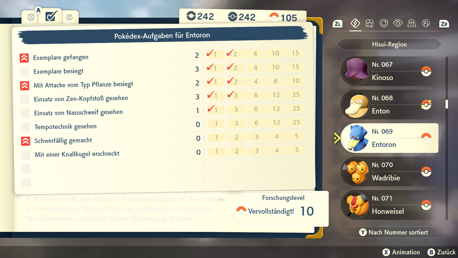 Zusätzlich erhaltet ihr für jede abgeschlossene Aufgabe 10 (normale Aufgabe) oder 20 (Aufgabe mit rotem Marker) Punkte. Um den Rang schnell erhöhen zu können, solltet ihr euch daher die Pokédex-Aufgaben eines Pokémon aussuchen, die leicht und schnell zu erledigen sind. Häufig ist es auch möglich mehrere Aufgaben gleichzeitig abzuschließen - beispielsweise, wenn eine Aufgabe die Tempo- oder Krafttechnik verlangt und eine weitere den Einsatz einer Attacke und/oder das Besiegen von Pokémon. Auch sehr einfach zu erledigen sind Aufgaben, in denen Pokémon gefüttert werden müssen, da man diese direkt an einem Pokémon abschließen kann.