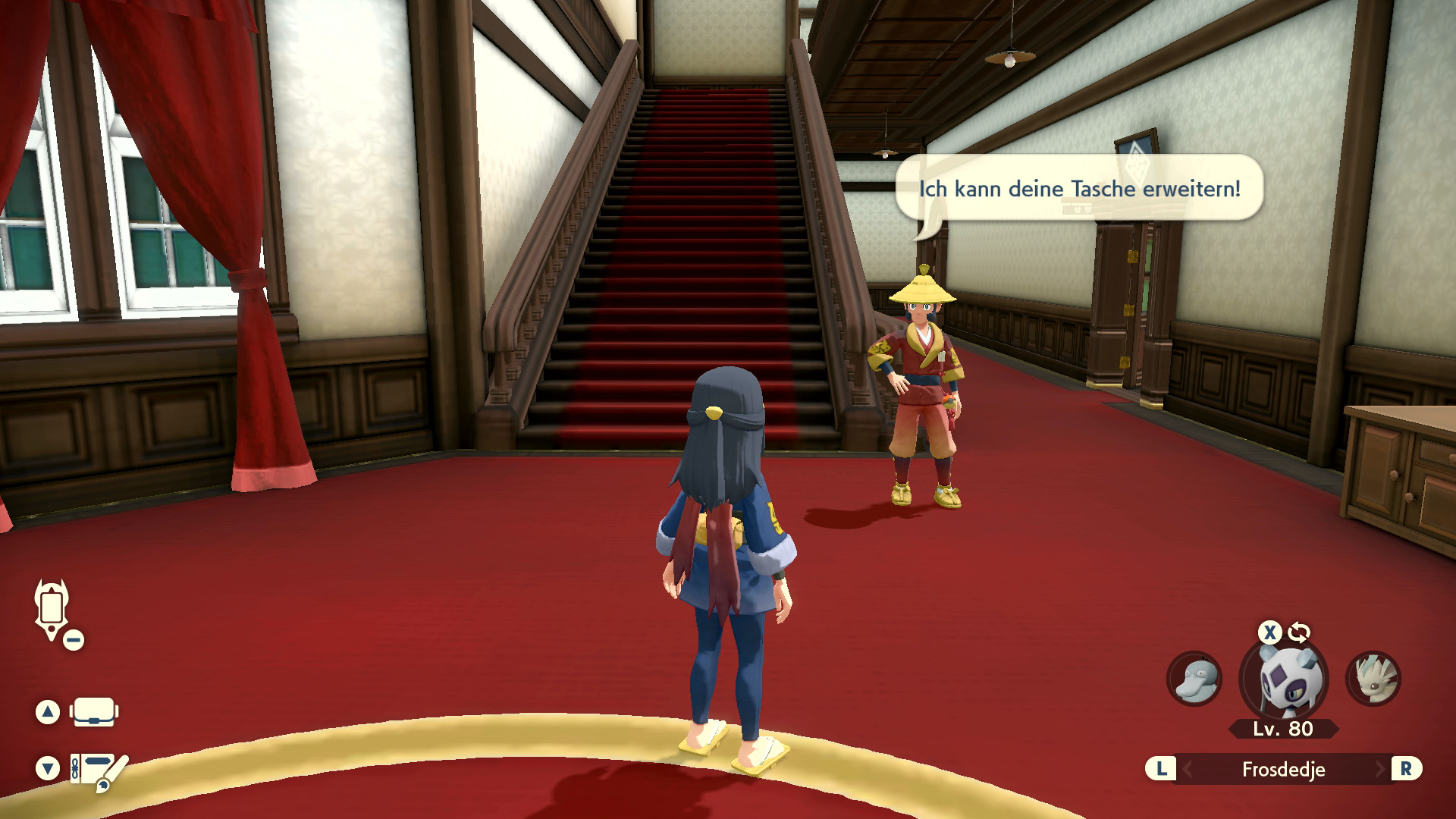 Warin kann mehrmals angesprochen werden, um den Beutelplatz zu vergrößern. Während er mit jeder Erweiterung immer nur einen neuen Platz für Items hinzufügt, verlangt er zunehmend mehr Bezahlung von Form von Pokédollar von euch: