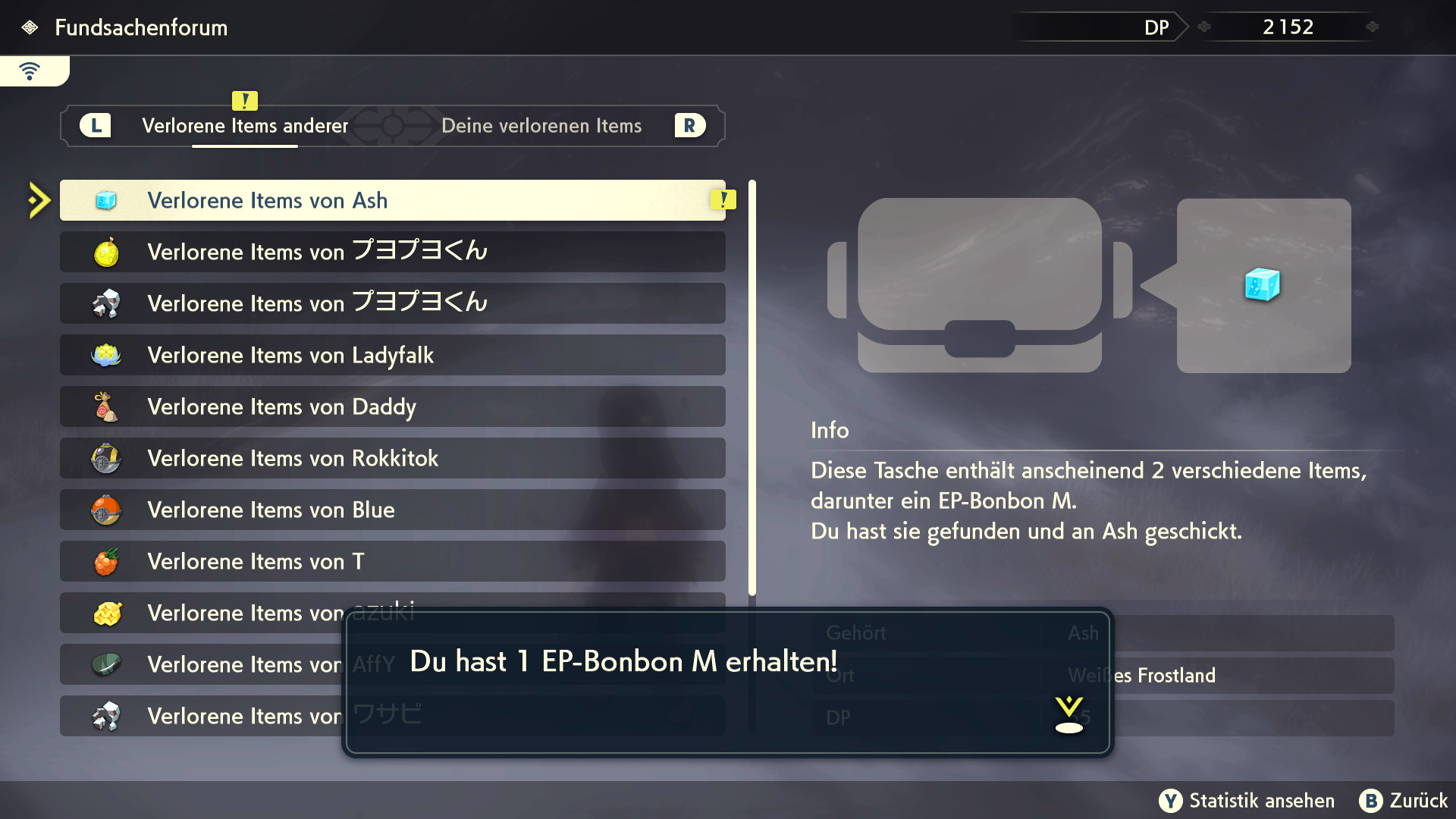 Sonderbonbons und EP-Bonbons können zusätzlich auch durch das Finden von Verlorenen Items anderer Spieler. In der Übersicht des Fundsachenforums kann eingesehen werden welche Items ein anderer Spieler verloren hat. Sammelt ihr den verlorenen Beutel des Spielers auf, habt ihr eine kleine Chance das angezeigte Item geschenkt zu bekommen.