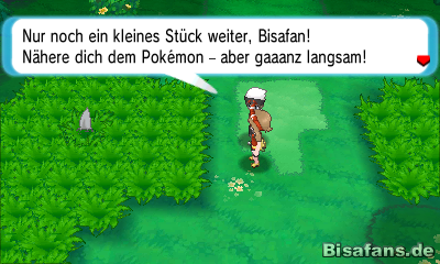 Weiter im Norden von Route 101 wird euch das Schleichen erklärt. Drückt dafür das Schiebepad langsam in die Richtung des Pokémon, das im Gras auftaucht und schleicht euch langsam und mit Geduld an. So könnt ihr einige Pokémon im Gras fangen, die sich dort gerade gezeigt haben. Manchmal besitzen diese Pokémon besondere Attacken, die im Poké-Multi-Navi angezeigt werden, sobald ihr auf die Lupe klickt. Probiert das Feature am besten selber einmal aus!