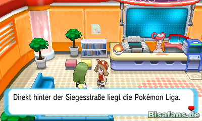 Begebt euch vor eurer Abreise noch einmal in das Pokémon-Center von Xerneroville und heilt dort eure Pokémon von dem Arenakampf. Ihr könnt euch nun auf zur Siegesstraße begeben.