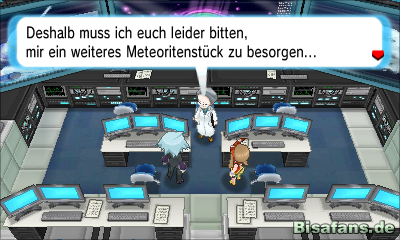 In Metarost angekommen könnt ihr nun zum Haus der Devon Corp. gehen. Dort erwartet euch Troy bereits. Er begleitet euch in das Anwesen und führt euch zu seinem Vater. Er erklärt euch schließlich was vorgefallen ist. Ein großer Meteorit rast auf Hoenn zu und das Raumfahrtzentrum in Moosbach City hat dies herausfinden können. Um den Meteoriten aufhalten zu können benötigt man ein Meteoritenstück. Macht euch also auf in die Granithöhle bei Faustauhaven, um dort ein solches Bruchstück zu finden.